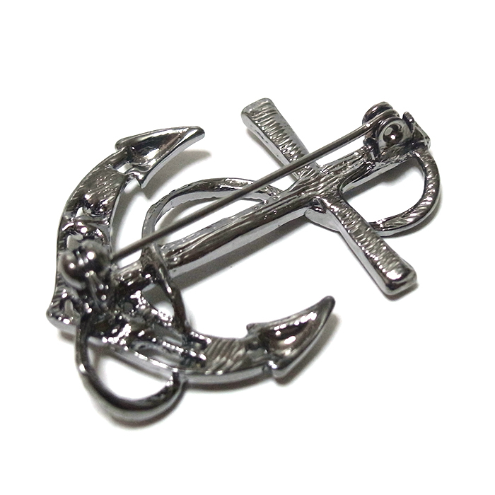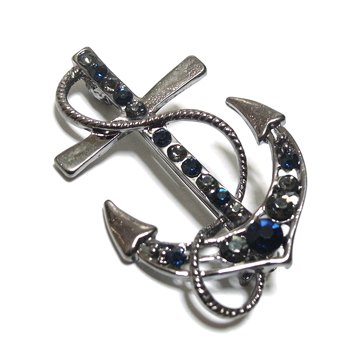 ラペルピン★ブローチ イカリ 錨 アンカー マリン 海洋 ラインストーン ブラック×ブルー pin-1510
