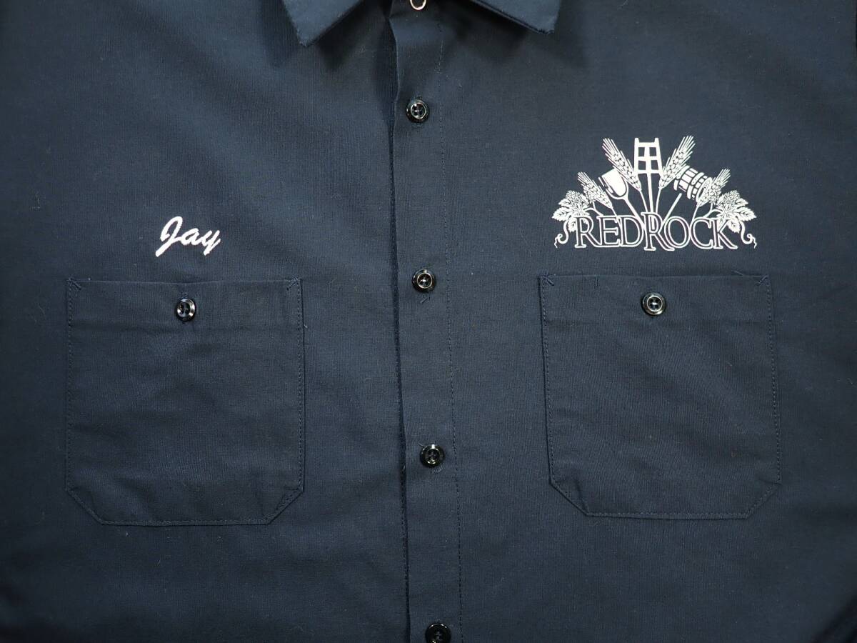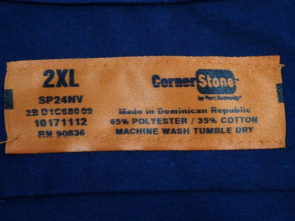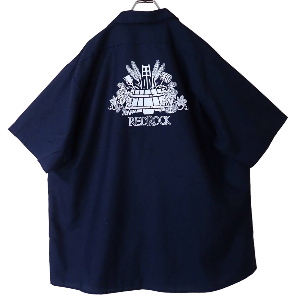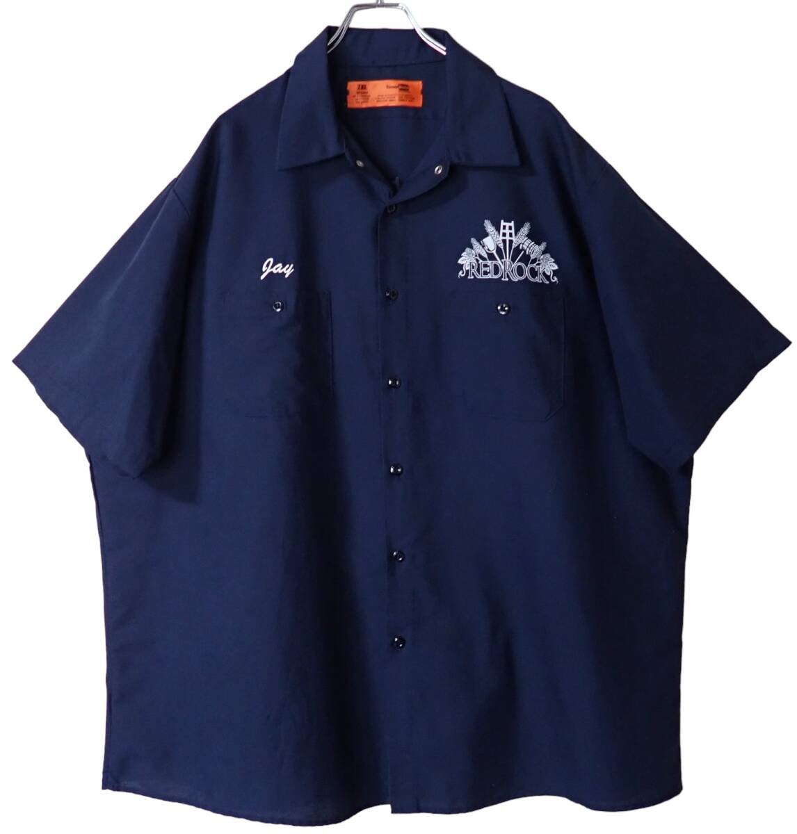 備考 CornerStoneのやや薄手の生地にフロントに刺繍、プリントバックにプリント施された半袖ワークシャツです。クリーニング、プレス済。