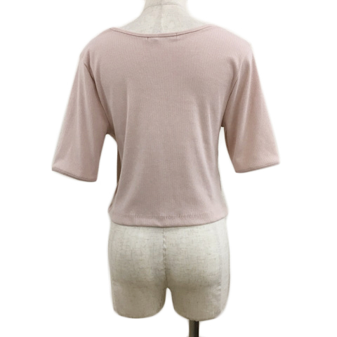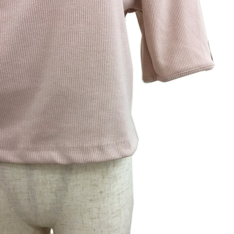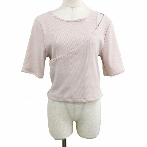 カスタネ Kastane カットソー プルオーバー ボートネック 無地 リブ カシュクール風 カットアウト 五分袖 F ピンク レディース