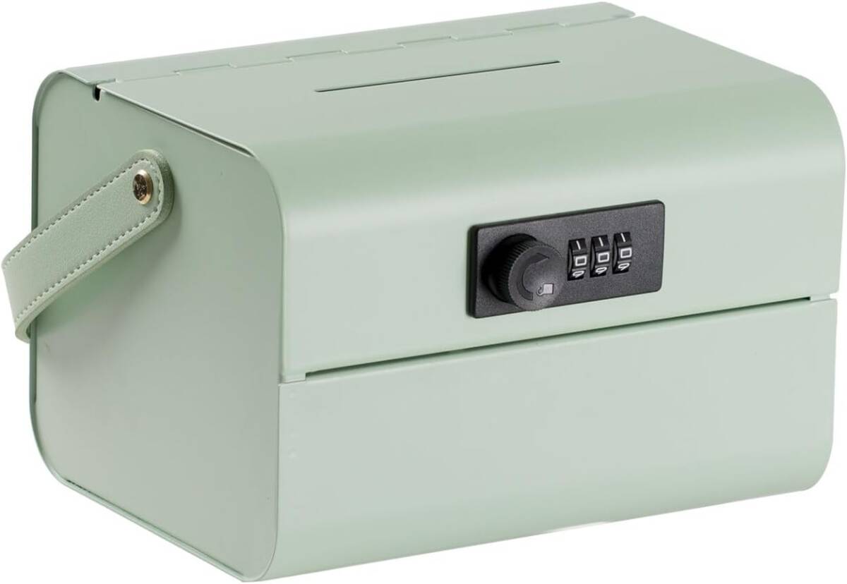 手提げ貯金箱 グリーン 貯金箱 ダイヤル錠 投入口付き スチール製 家庭用 子供 手提げ金庫 子供銀行 簡易金庫 お金BOX マネーボックス