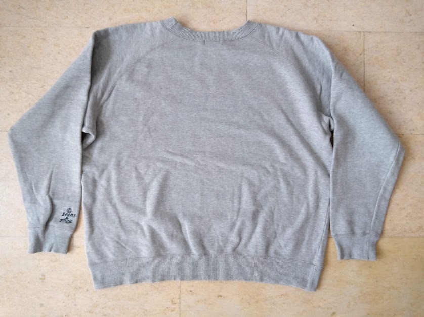 袖にBEAMSとPGのロゴ刺繍、裾のリブに赤のピスネームが施されています。