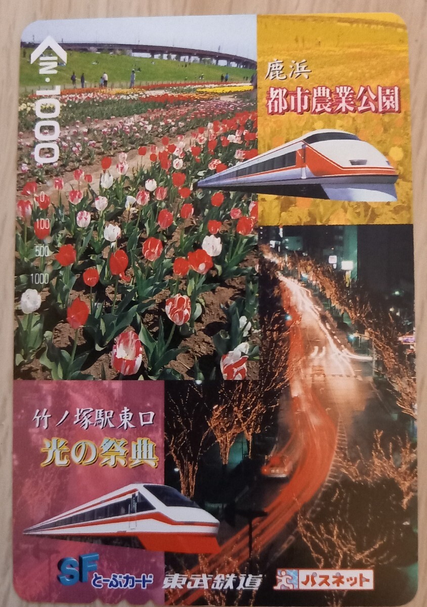 使用済パスネット 東武鉄道 竹ノ塚駅東口 光の祭典 鹿浜都市農業公園です。