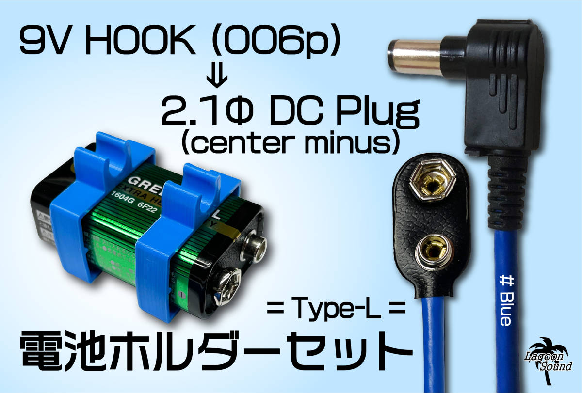 << 9V Snap Hook ⇒ 2.1Ф DC Plug (center minus) 【 Type-L 】& 電池ホルダーセット >>