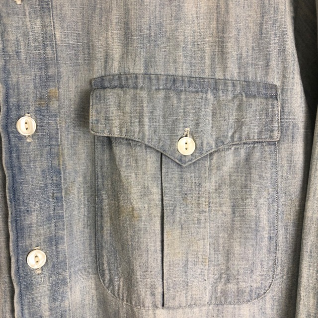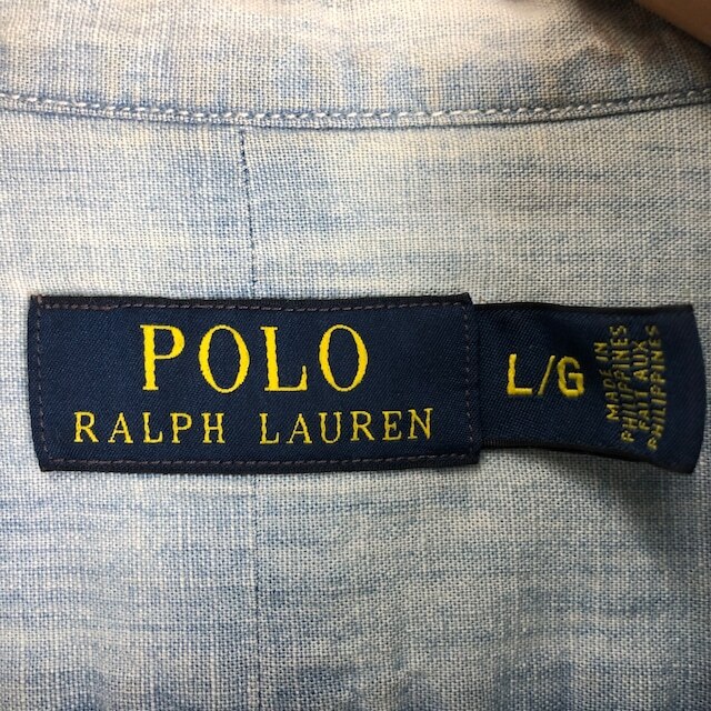 USED 加工 POLO RALPH LAUREN シャンブレーシャツ 長袖シャツ メンズ Lサイズ ストリート アメカジ ビンテージ加工 古着 e24061027