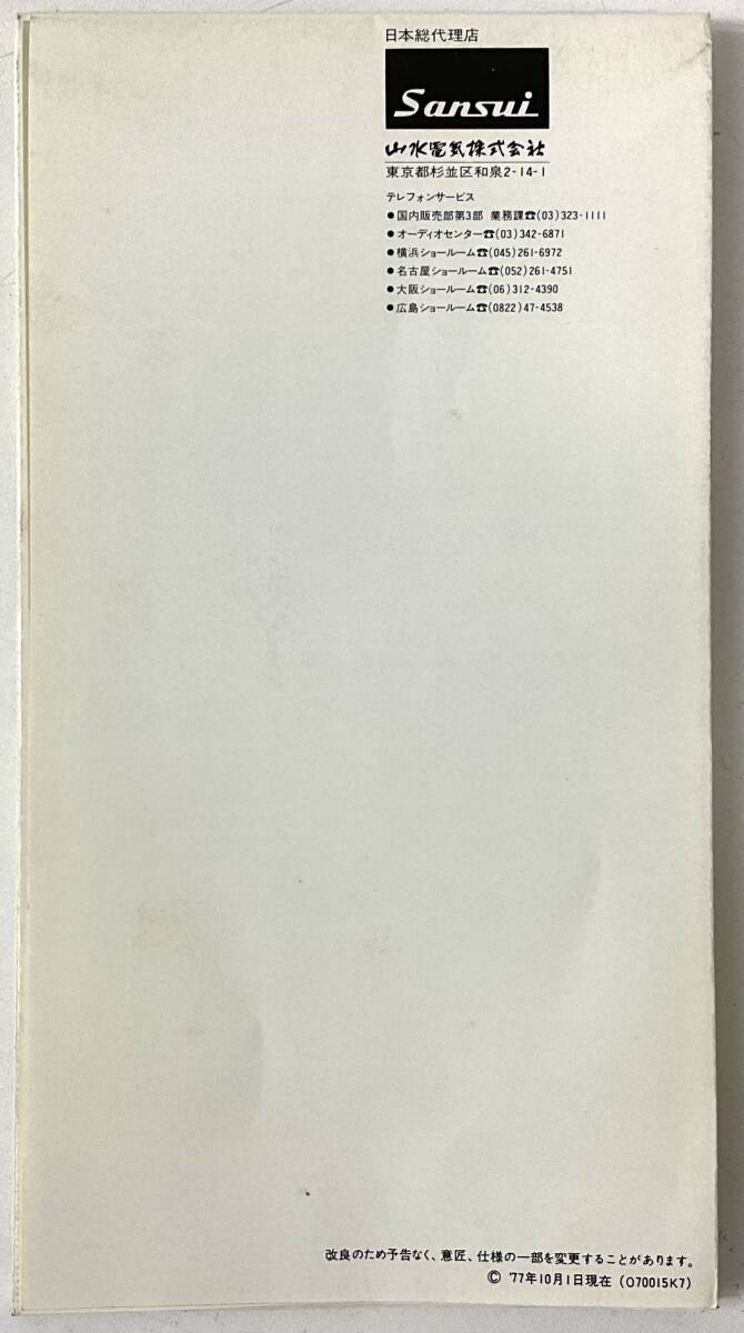 入手困難 ヴィンテージ オーディオ パンフレット JBL Precision Loudspeaker System スピーカーカタログ 1977年 SANSUI 山水電気株式会社