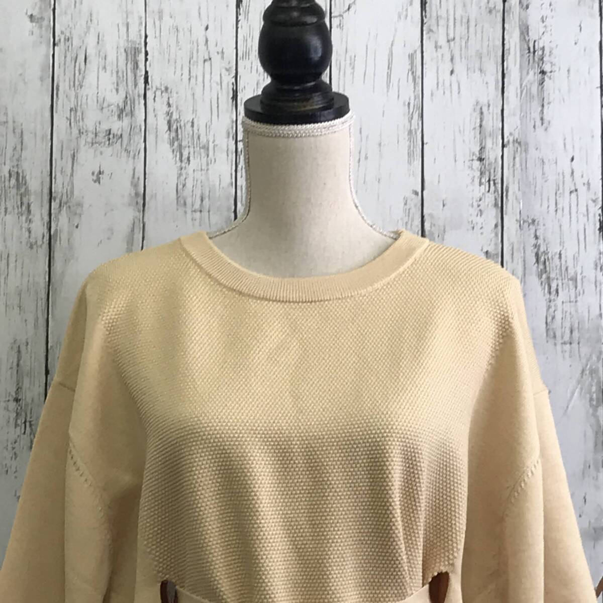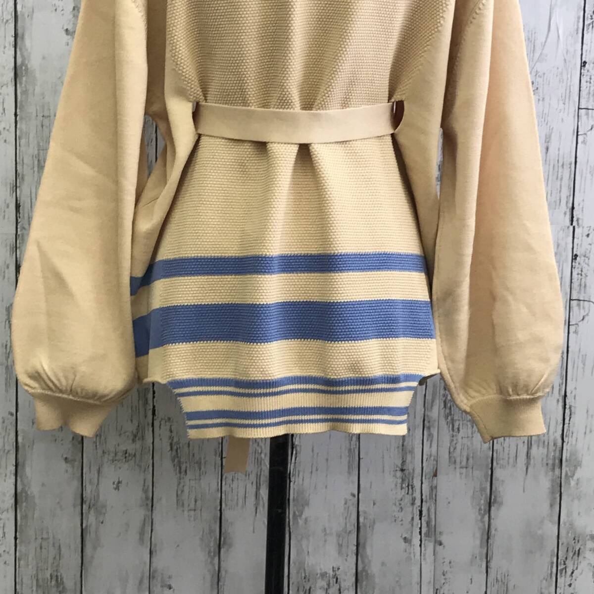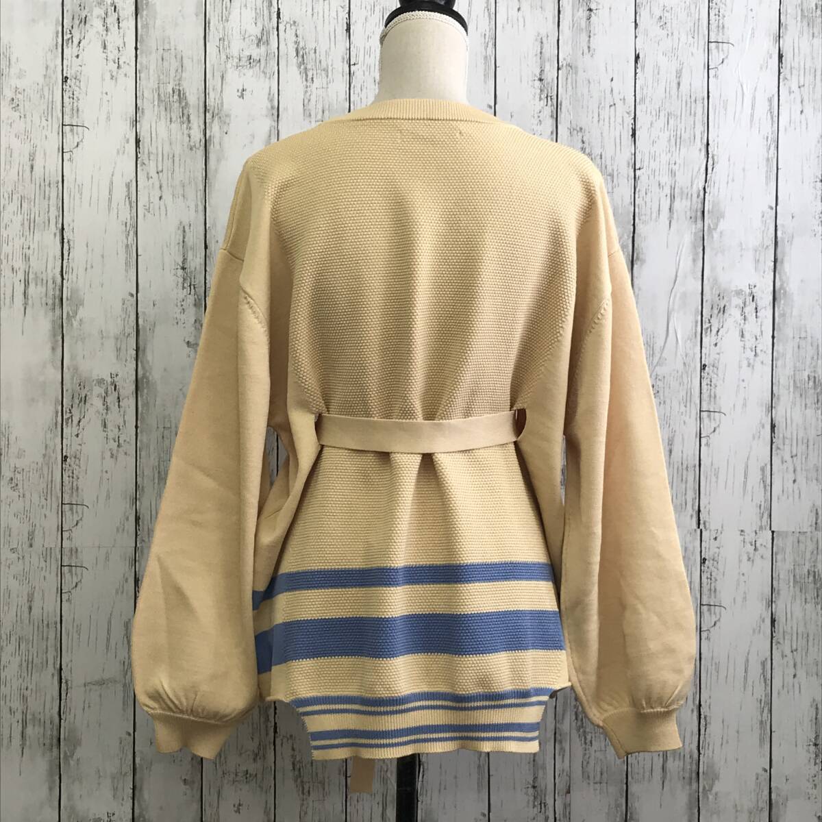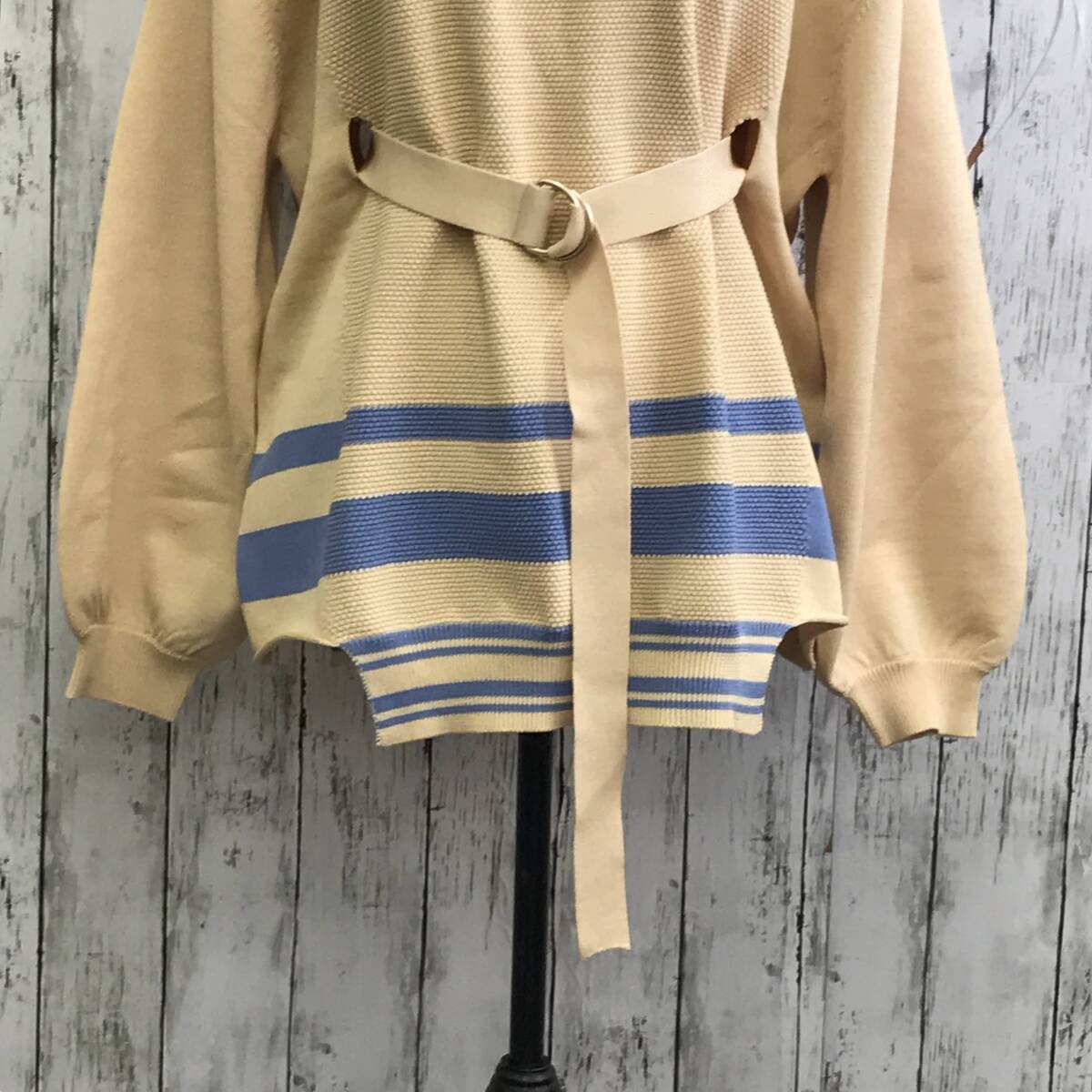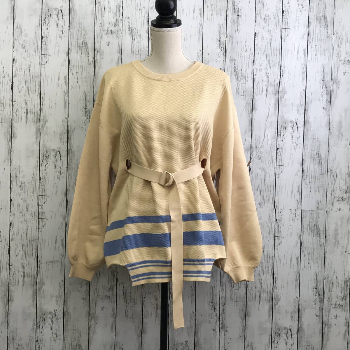 | 商品説明 | 商品名/ベルテッドラインプルオーバーニット サイズ/F 着丈64cm 身幅61cm 肩幅55cm 袖丈54cm 素材/ポリエステル59% レーヨン41% 商品状態/未使用に近い |