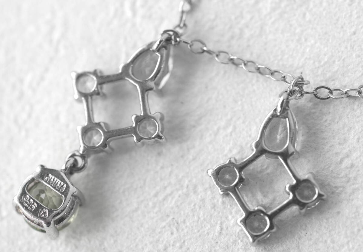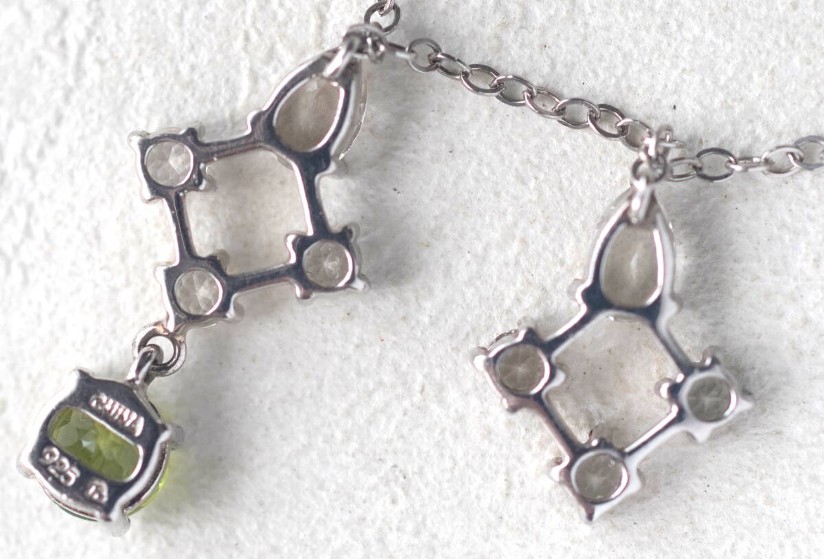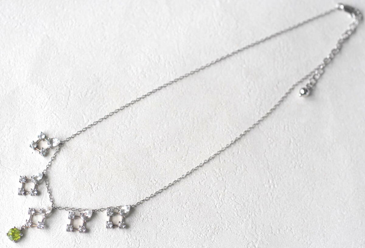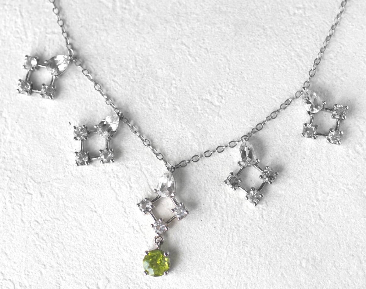 シルバー925製 クリアストーンとペリドット風黄緑石付きネックレス