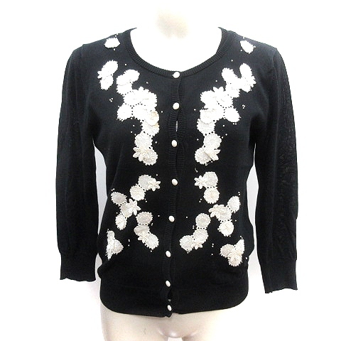 ピュリフィエ PURIFIER アンサンブル ニットカーディガン レース 七分袖 ニットセーター Uネック 半袖 38 黒 ブラック /AU レディース