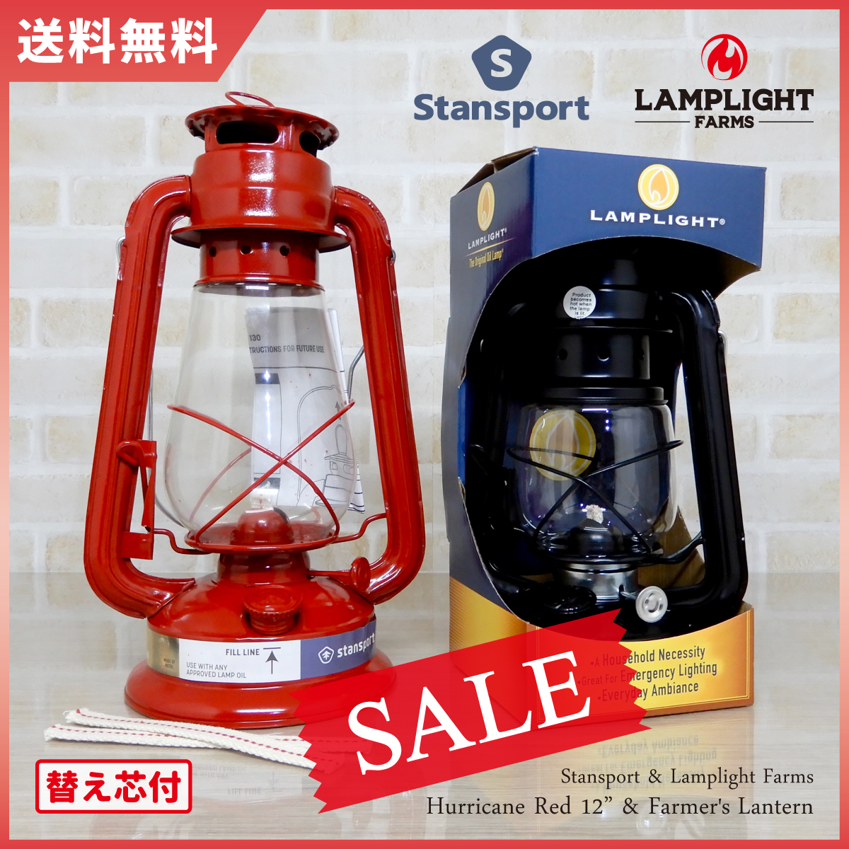 セット割大特価!【送料無料】新品 Stansport Lantern Red 12 & Lamplight Farmer's - Black 替芯付 ◇スタンスポーツ ハリケーンランタン