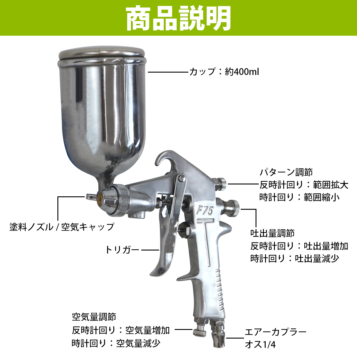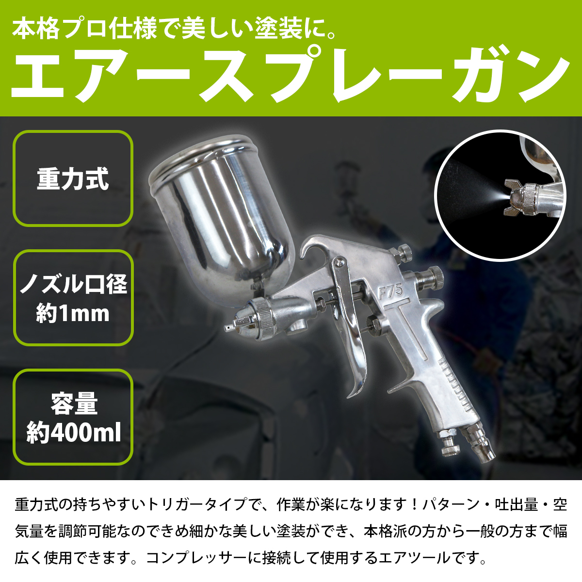 [口径 1.0mm]重力式 塗装ガン エアースプレーガン 400cc 400ml 上カップ 板金 塗装 エアー スプレー ガン エア 塗料 1mm
