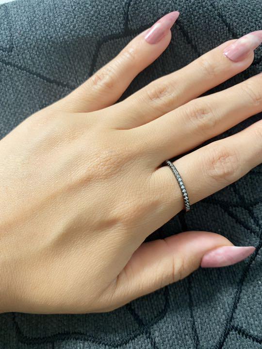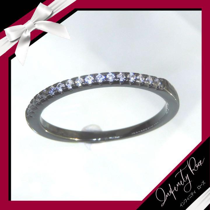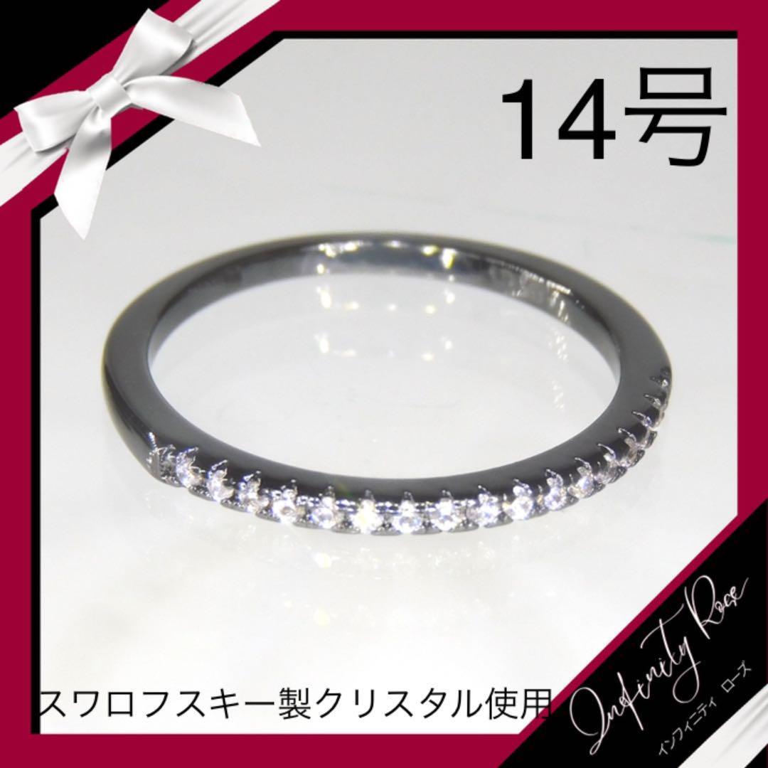 (1074)14号 ブラック 小粒 繊細な極細リング 指輪 スワロフスキー製クリスタル使用 細身リング 重ね付け