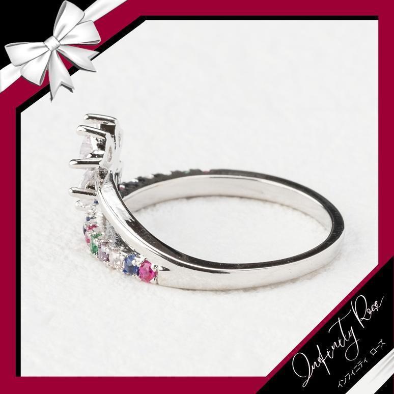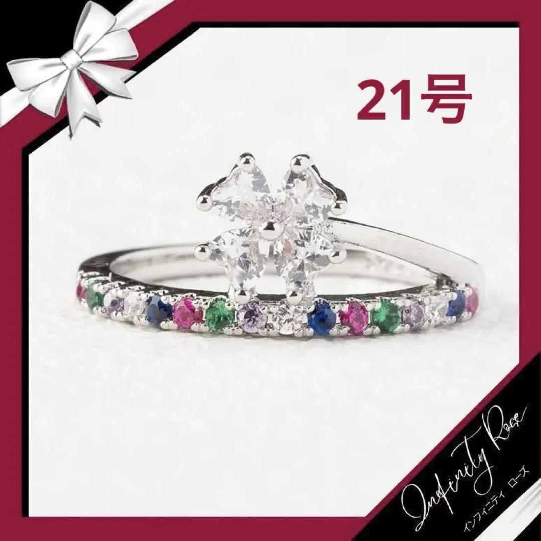 (R041S)21号 シルバーカラフル幸せの四葉のクローバーリング 爪留め指輪