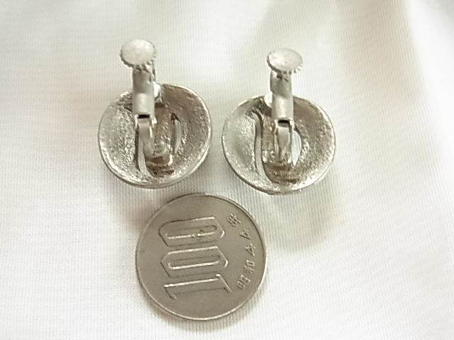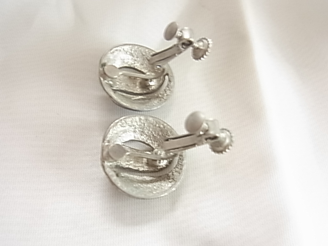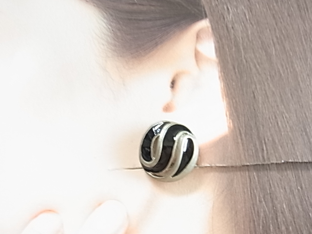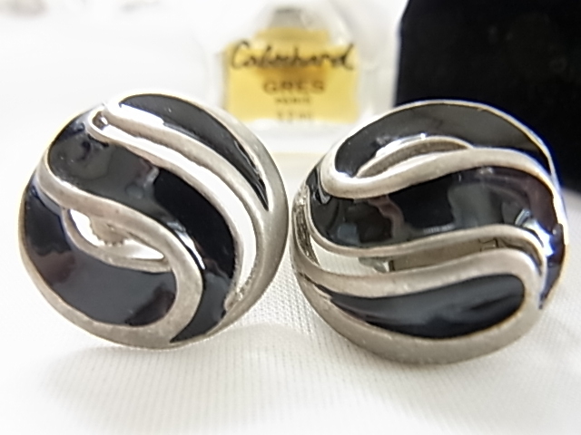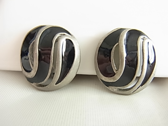 ビンテージ/ヴィンテージ 黒色トーンのエナメル装飾にシルバートーンでシックな印象の個性的なデザイン レトロな素敵なイヤリング■