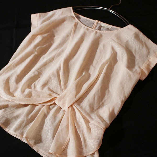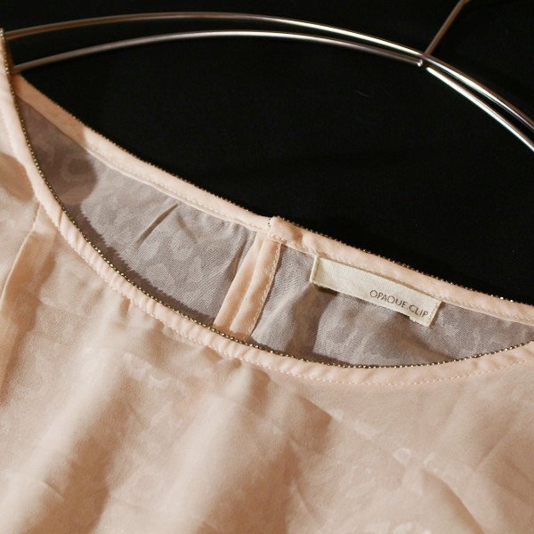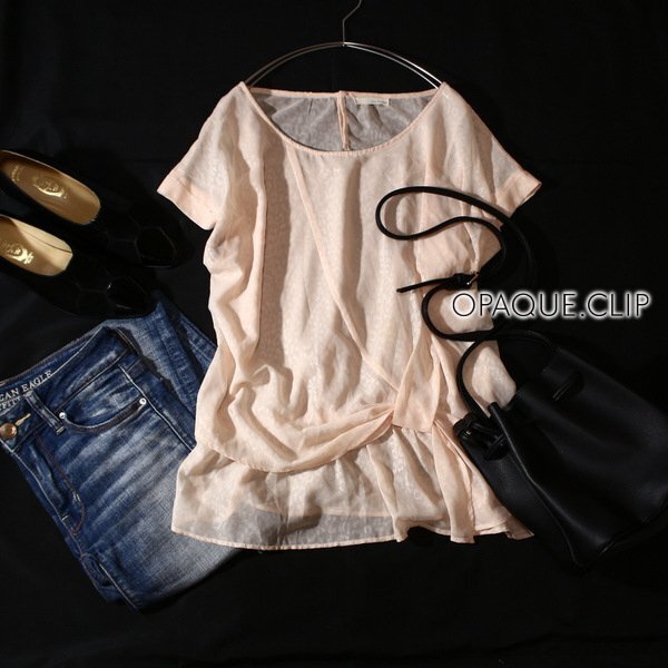 美品 (株)ワールド OPAQUE.CLIP オぺークドットクリップ 可愛い 同色レオパード柄 シフォン カットソー 36号 S 春 夏 24C06