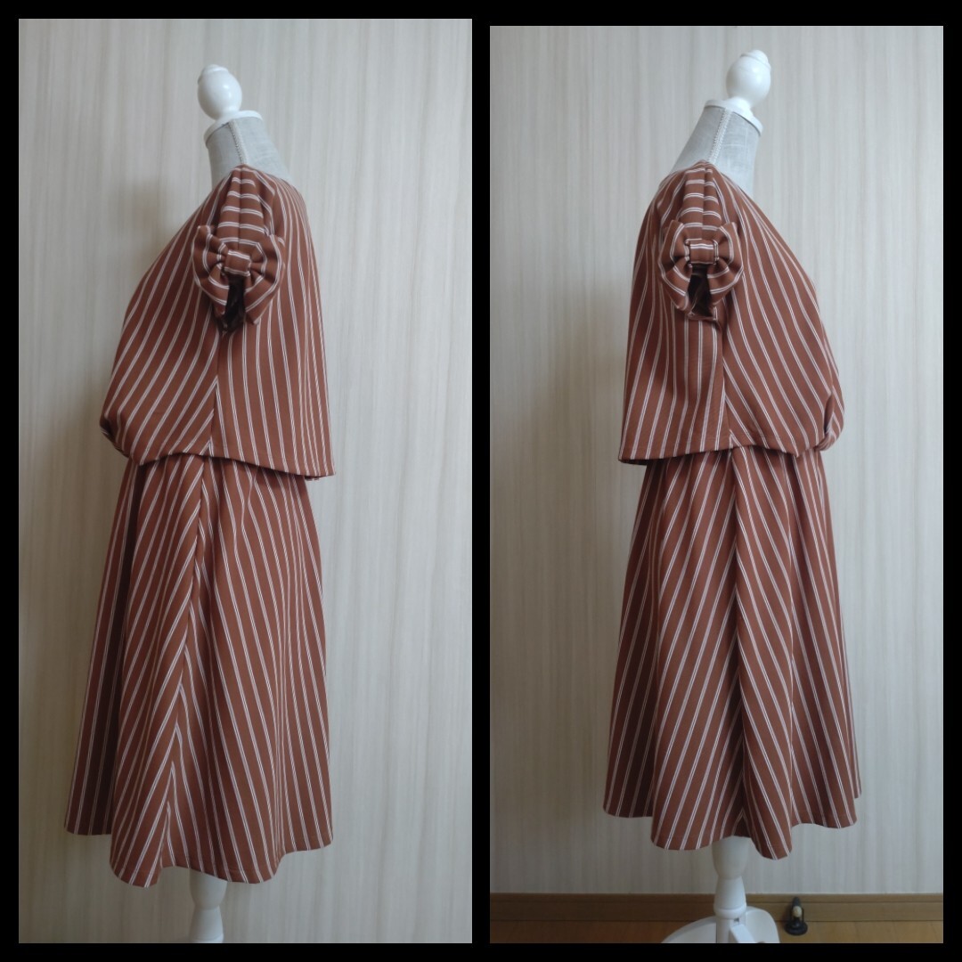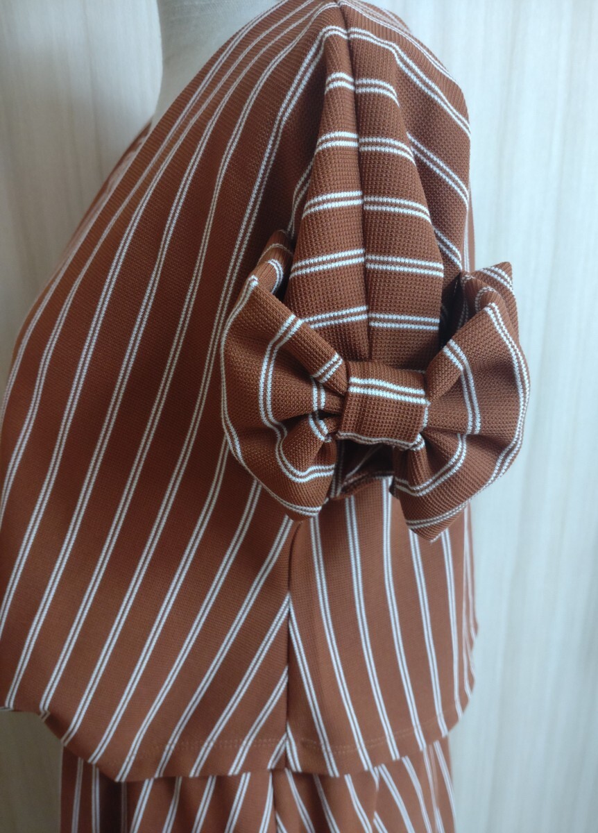 ●説明:袖の大きなリボンが可愛いストライプのワンピースです。