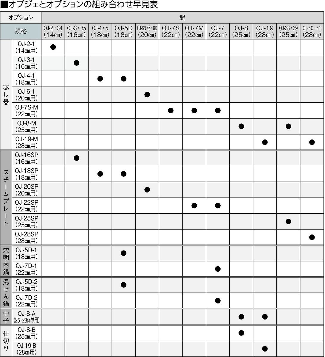 ご家庭にあるオブジェの鍋にオプション製品を組み合わせていただくと、一つの鍋をいろいろな調理に使えて便利です。
