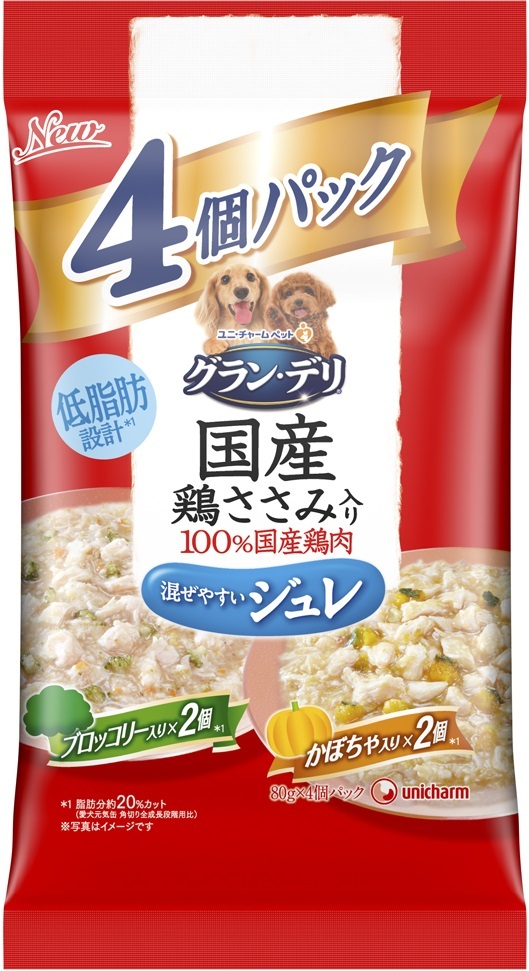 100%国産の良質な鶏肉を調理。美味しい鶏ささみ入りレトルトパウチ。ドライタイプやソフトタイプのフードと混ぜやすいジュレタイプ。水分補給にもおすすめ