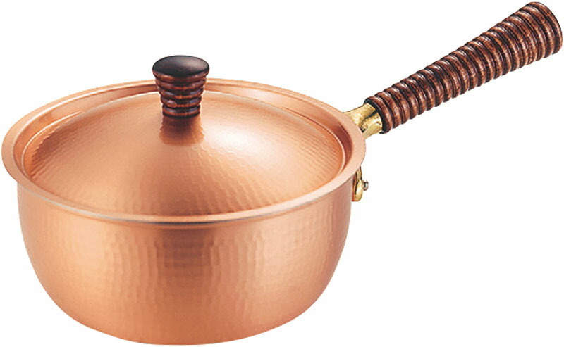 「温故知新」古き良いものを継承して今風にアレンジ。煮こぼれしにくい形状と、伝統技法の千段巻き模様のハンドル、つまみは天然木のため、手になじんで安全性を高め、今までにない斬新なデザインになっています。丸みのある形状は、銅の熱伝導性との相乗効果により熱が対流しやすく、より一層片煮えのない料理に仕上げてくれます。