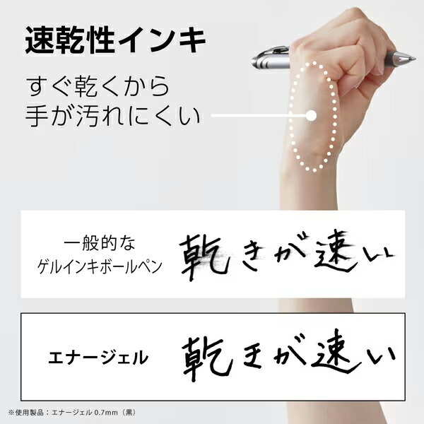 エ・ナージェルインキは、紙に素早くインキが浸透するので、大切な書類や手を汚しにくい速乾性が特長です。