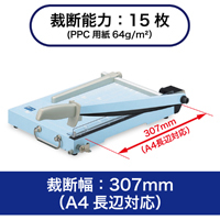 【裁断能力】15枚(PP用紙64g/m2) 307mm(裁断幅)