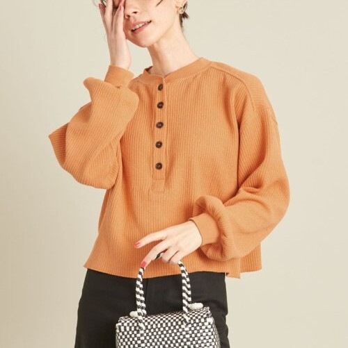 前後2WAYが魅力の大人カジュアルなリブヘンリーネックプルオーバー。
