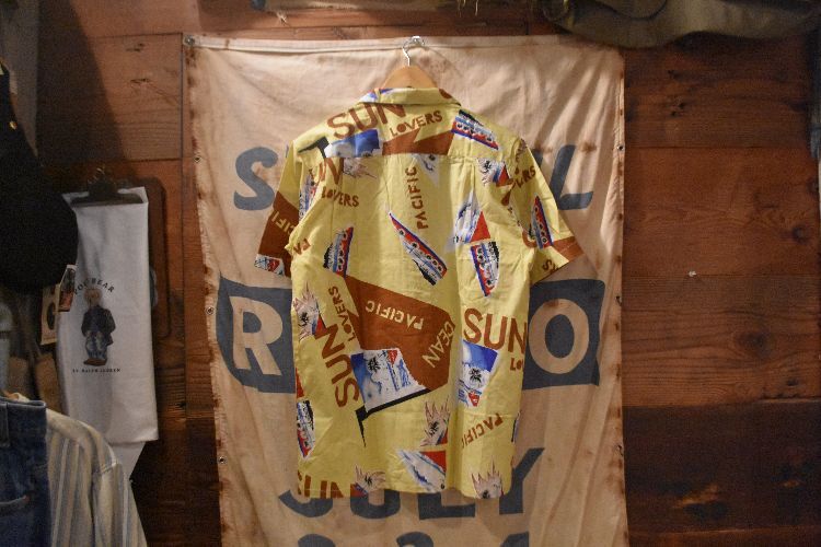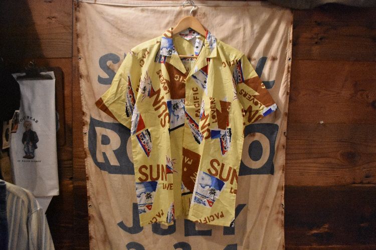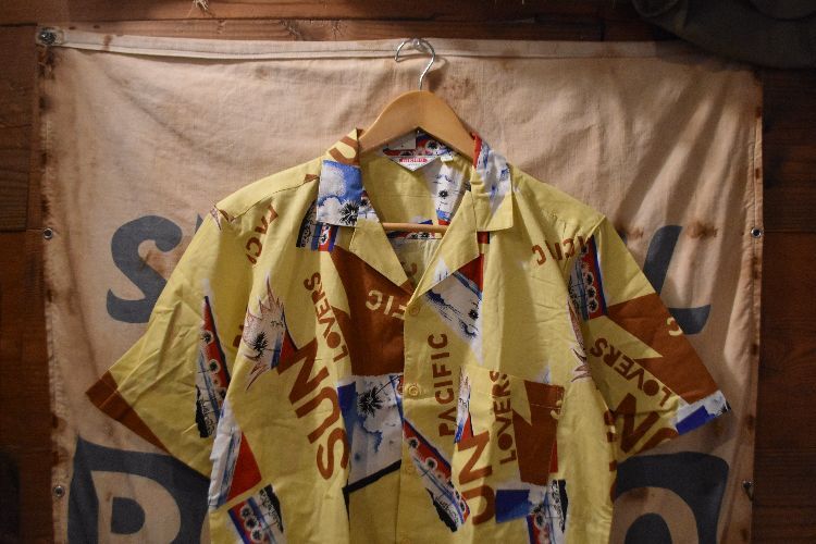 グッドカラーデッドストック品未使用品80S~ビンテージNIKIBO LONDON半袖ハワイアンシャツアロハシャツ黄色系Lアメカジn24595