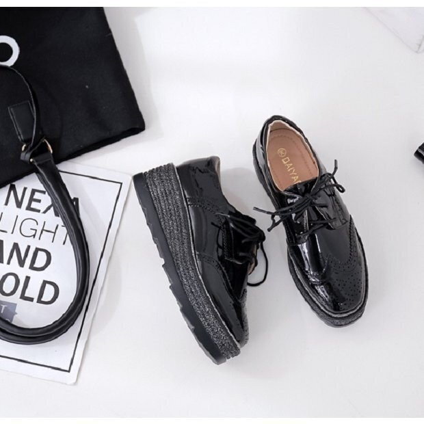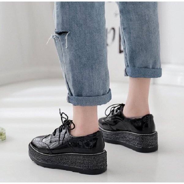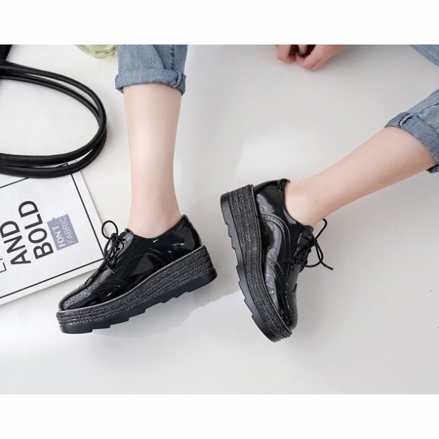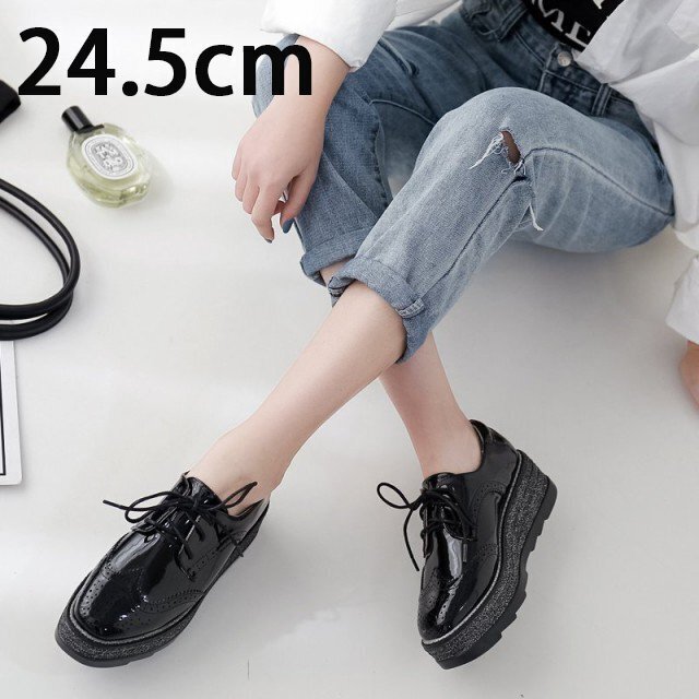 オックスフォードシューズ レディース 厚底 プラットフォーム 靴 厚底靴 ウイングチップシューズ ブラック 24.5cm