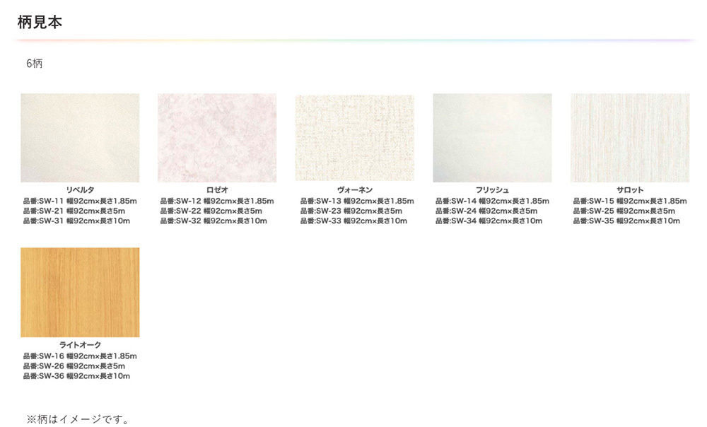 ビニルカベ紙(※)、紙カベ紙、ベニヤ板、化粧合板、シックイ壁、ツヤあり塗装面、ツヤ消し塗装面