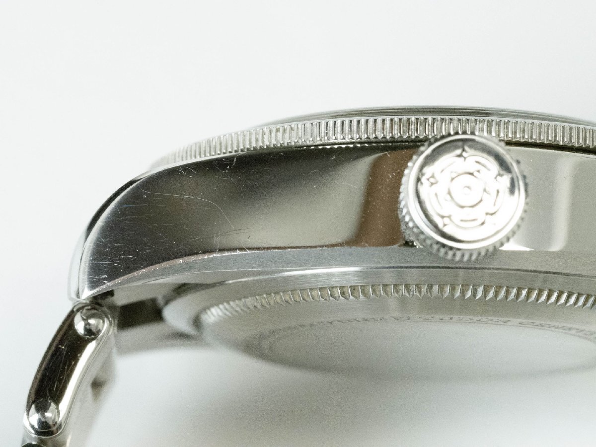 外側 | ベゼル側面に浅いスリキズ ケースに線キズ ベルトに線キズ バックルに線キズ |