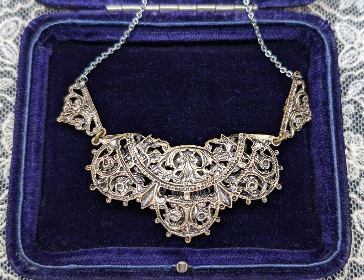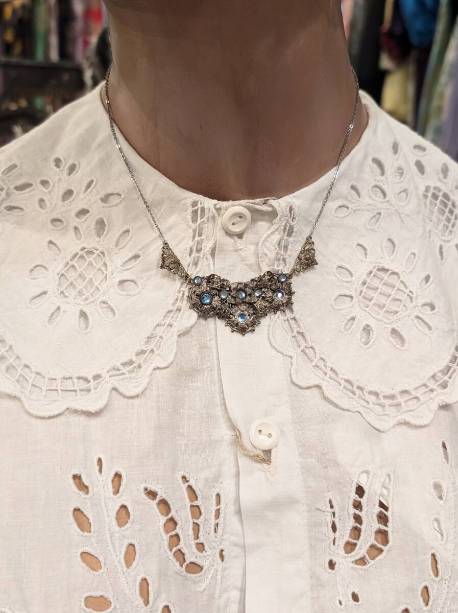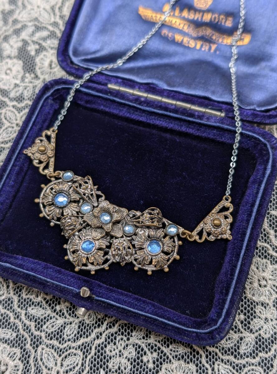 イギリスヴィンテージ 30’sチェコガラスネックレス /ネイガー風/花フラワー英国ヴィンテージアールデコ20’sブライダルΓOT