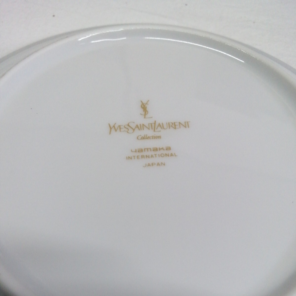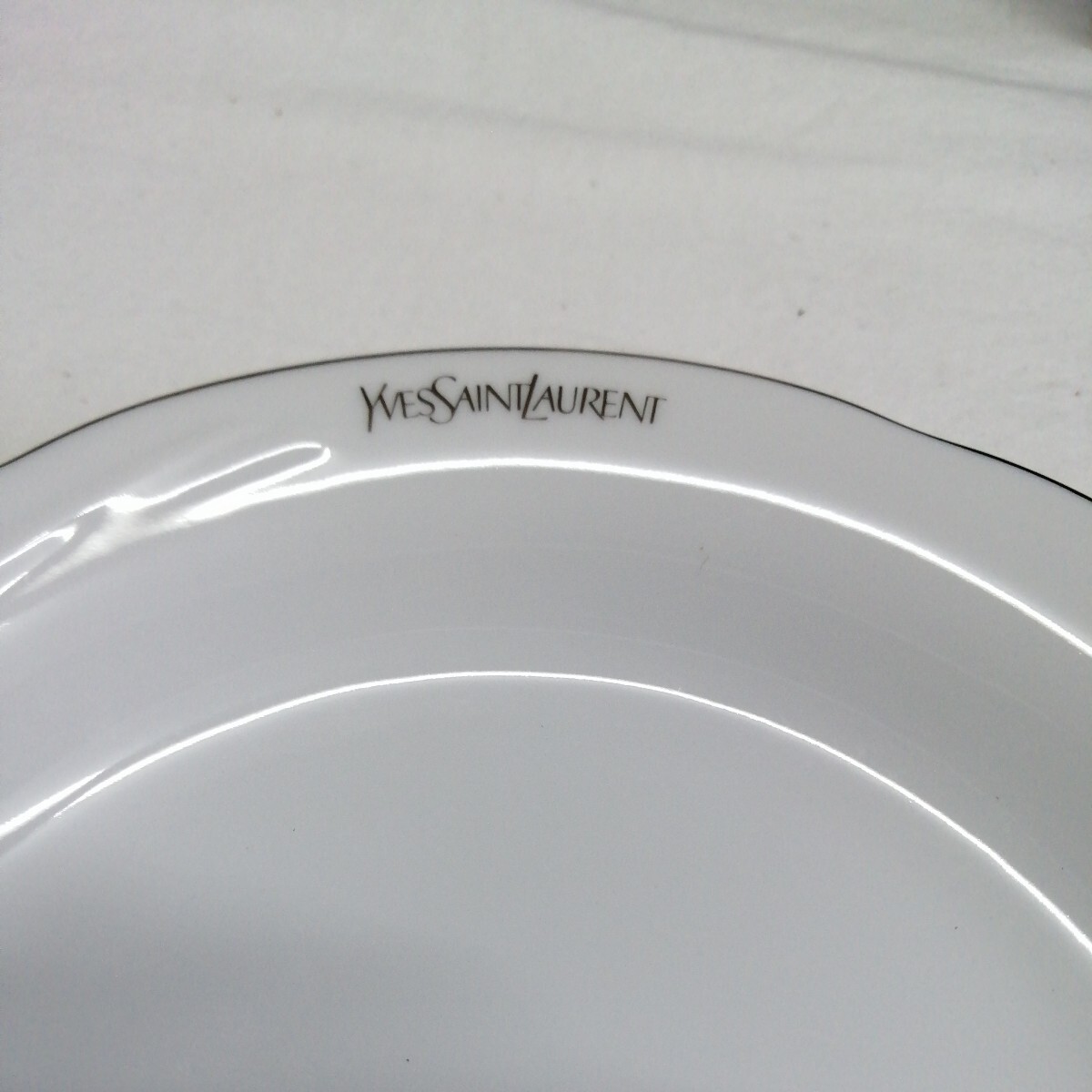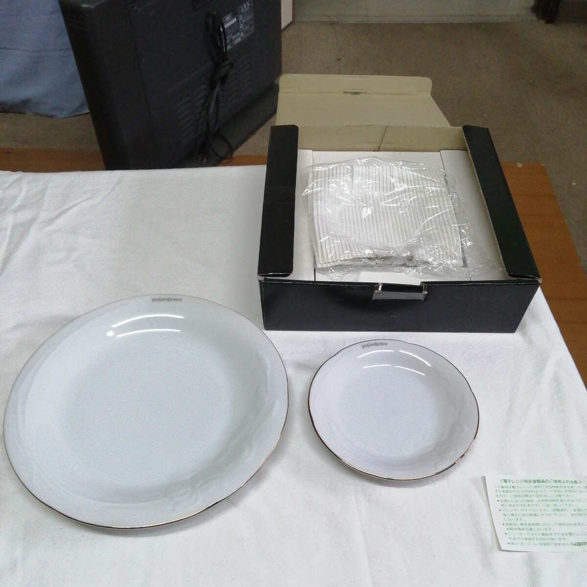 箱入未使用品 イヴサンローラン パーティセット 大皿1 小皿5 ホワイト 浮き彫り 金縁 金製品 JAPAN 洋食器 陶磁器 ケーキ皿