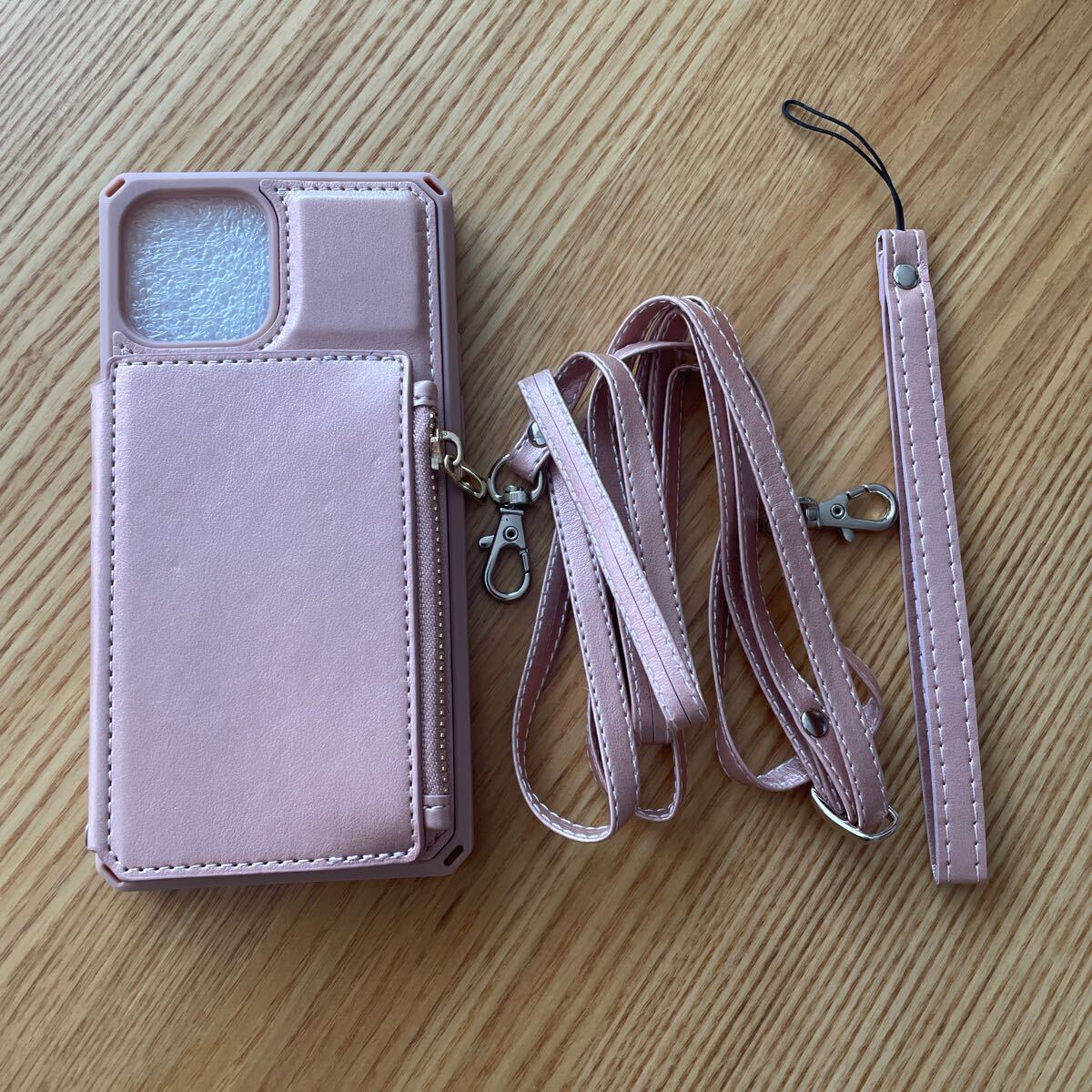 iPhone12用ケース肩掛け 首かけ 斜めがけ ショルダーピンク