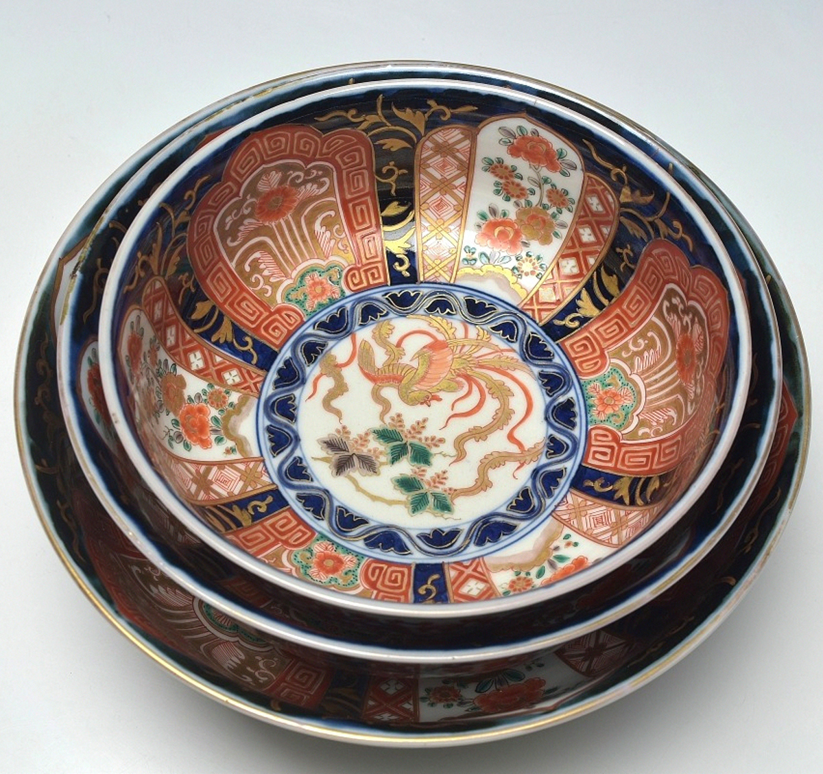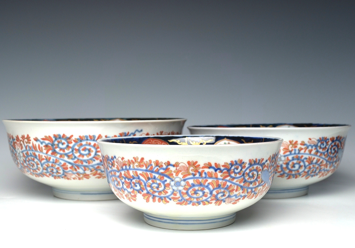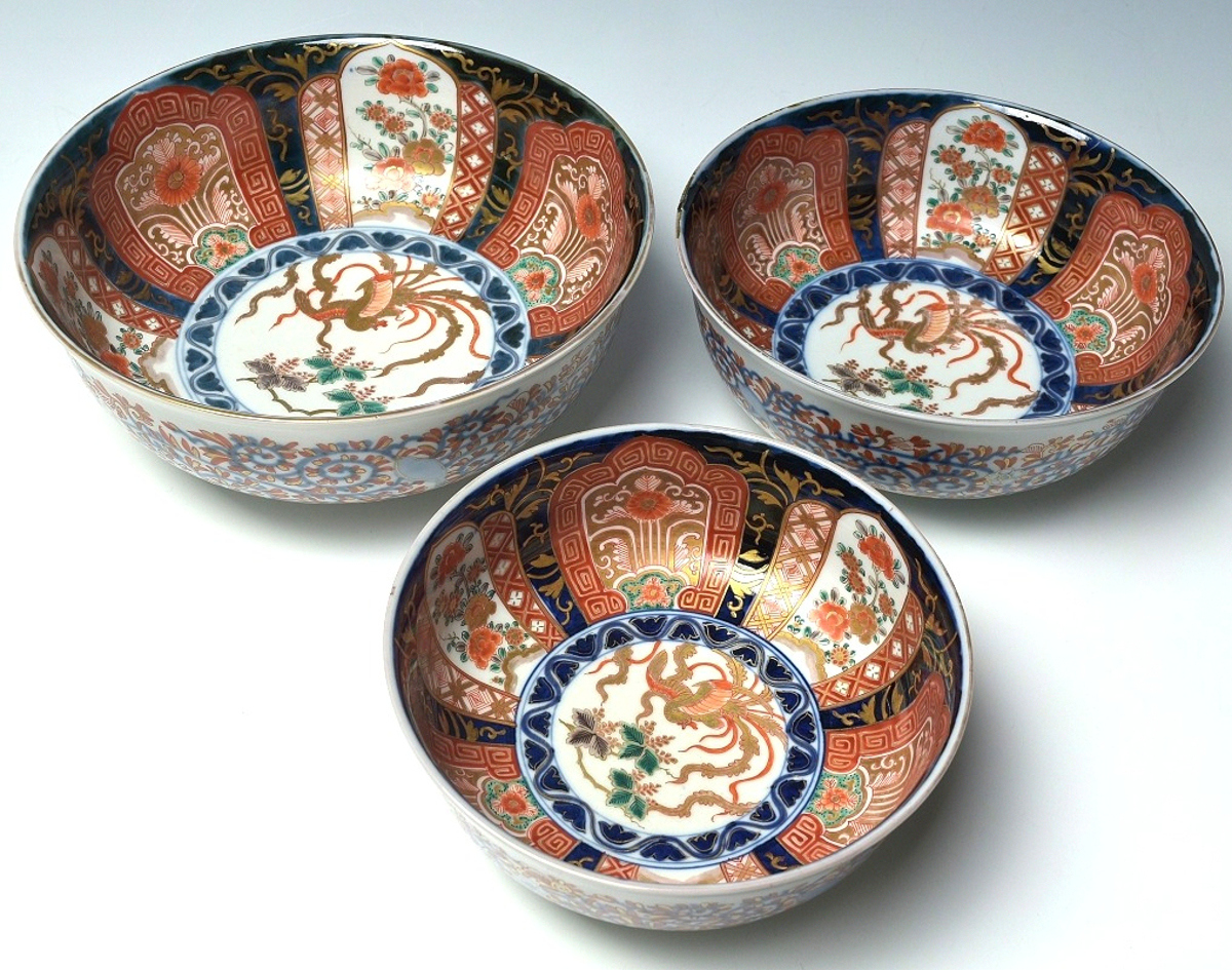 | 商品名 | 【趣楽】 時代 古伊万里鳳凰図三つ丼 X1221 | ||