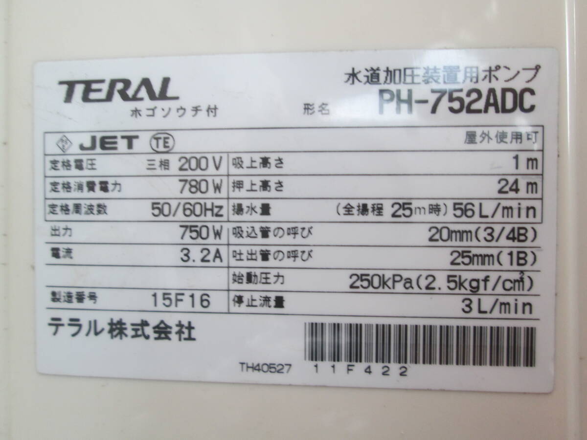 B-10 テラル 浅井戸ポンプ PH-752ADC 3相 中古