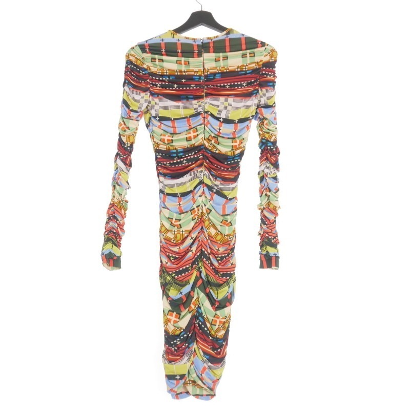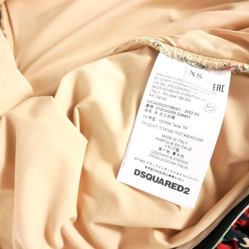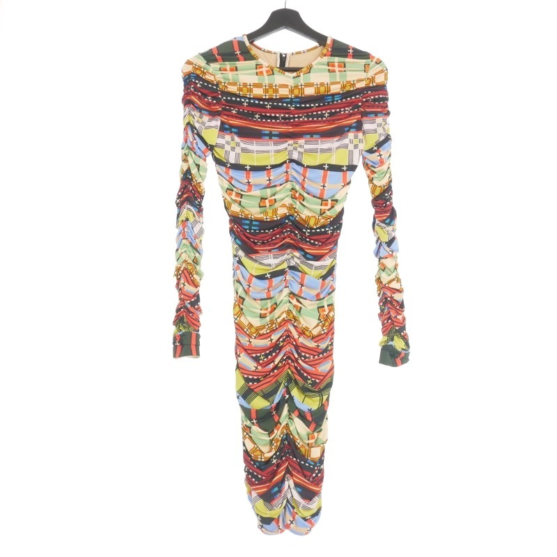 ディースクエアード DSQUARED2 22AW 総柄 シャーリング タイトワンピース ドレス 長袖 XS マルチカラー S72CV0355 国内正規 レディース