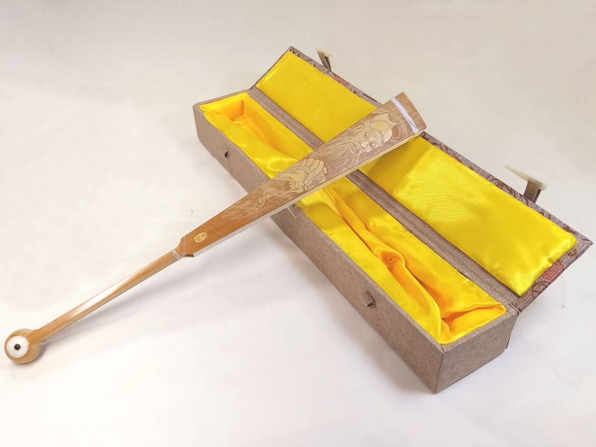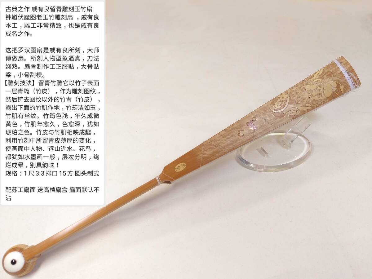 ●簡要説明:この出品は、天然世界最高級特大珍稀野生銘竹金絲玉竹(陳化老料)双面留青浮彫刻文扇『鐘馗伏魔図』●工芸美術大師作品です。最高級専用手工芸絹張り木製収蔵ケース付きです。