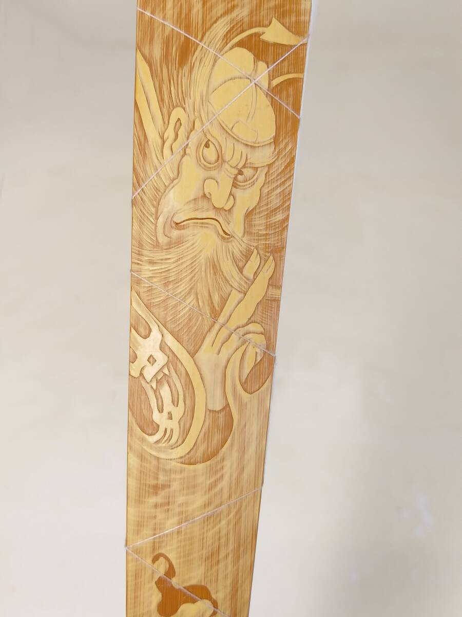 写真をご覧下さい。この品は、最高な世界珍稀銘竹材料を使用し、中国北京の中国工芸美術品総合会社の工芸美術大師戚有良にお願いして手作業により高彫製作したオーダーの作品です。この品は、納期までに2年6か月を費やしました。2024年5月にようやく手に入りました。大変素晴らしい “浮彫” の開運彫刻芸術作品です!