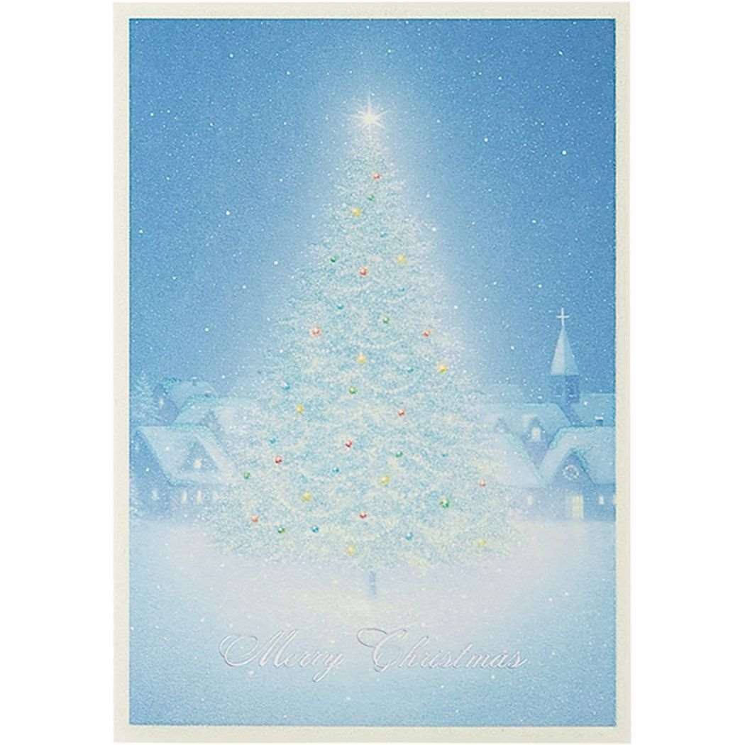 グリーティングカード CHRISTMAS クリスマスカード jx5-3 家並みに白ツリー プレゼント