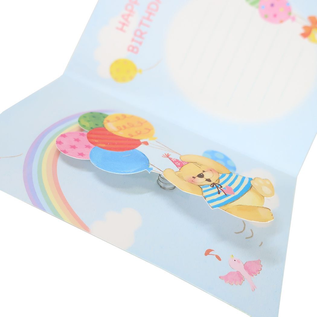贈ってももらっても楽しいグリーティングカード 贈ってももらっても楽しいグリーティングカード部材をつけて立体的に飾られたハンドメイドのバースデーカード風船を持ったくまさんがバースデープレゼントを運んでくれる、お祝いの気持ちを贈るのにぴったりなカードですほかにもいろんなメッセージカードがあるのでお気に入りをみつけてください封筒サイズ:115x165mm