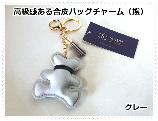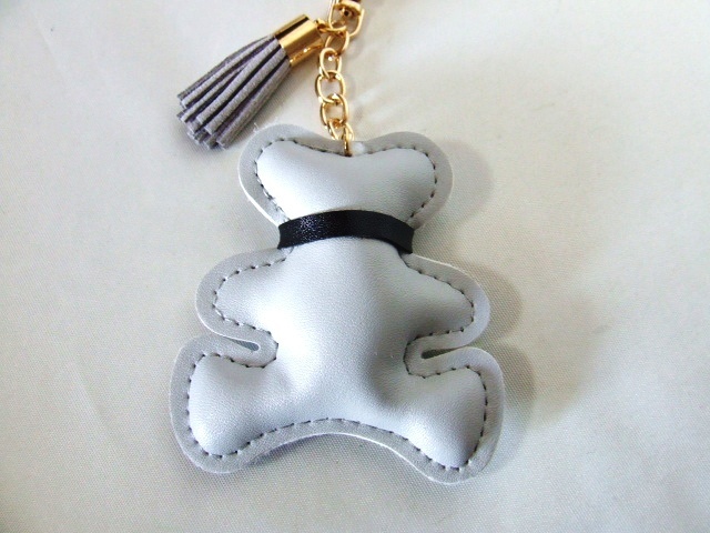 くまモチーフの高級感がある合皮バッグチャームです。バックチャームとしてはもちろんキーホルダーとしてもワンポイントのアクセントになること間違いなし♪