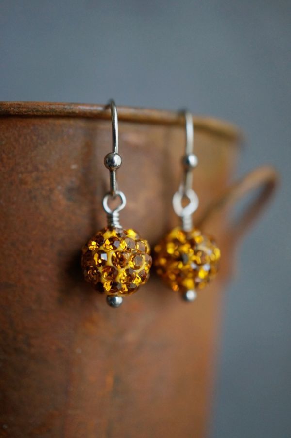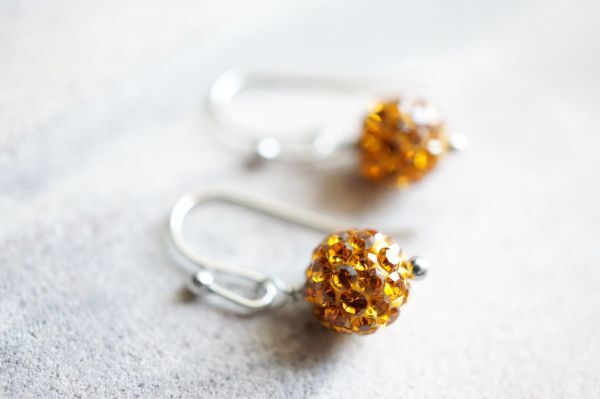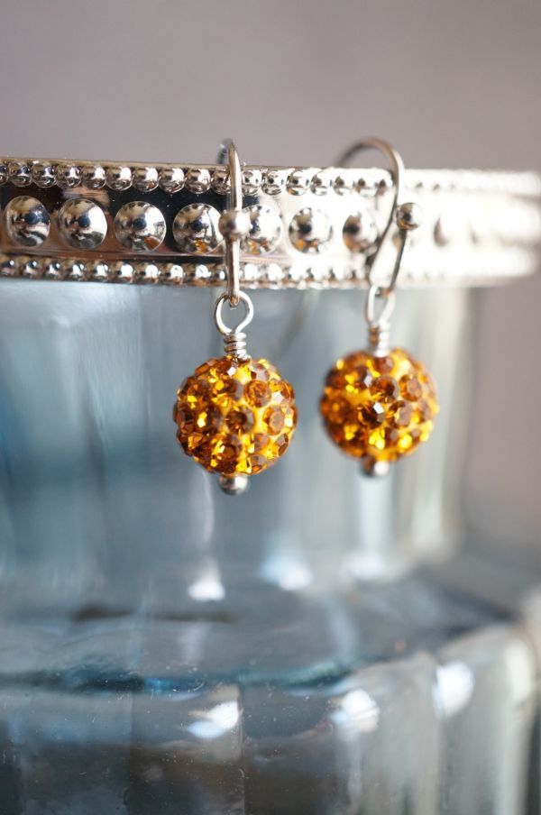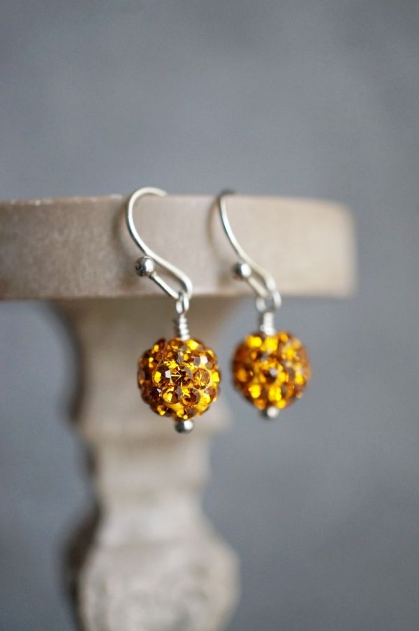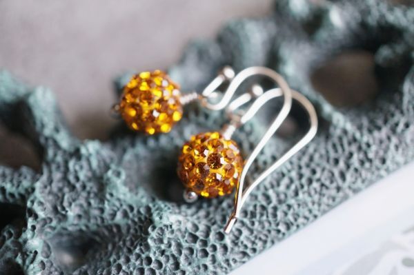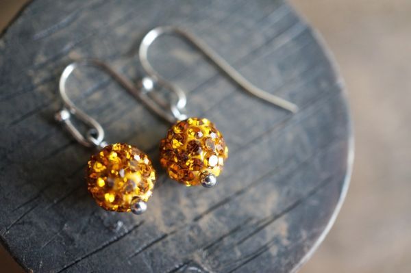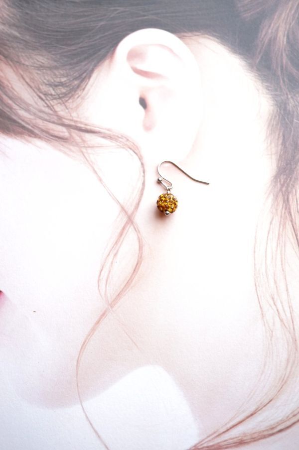 サージカルステンレス ピアス 384 パヴェボール オレンジカラー 金属アレルギー対応金具使用