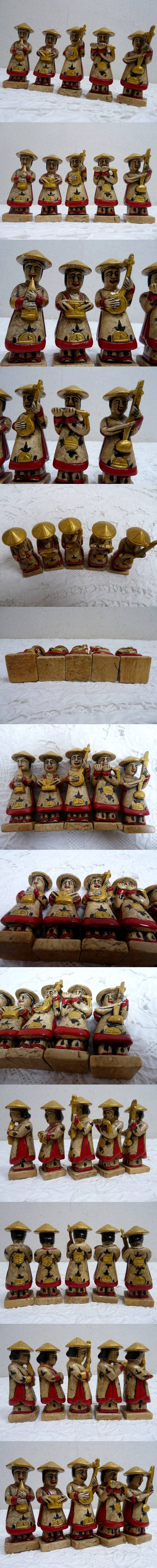 (☆BM)石製 ベトナム 楽器隊 置物 オブジェ 5点 人形 民族 工芸品 アンティーク アジアンレトロ フィギュリン フィギュア