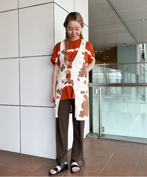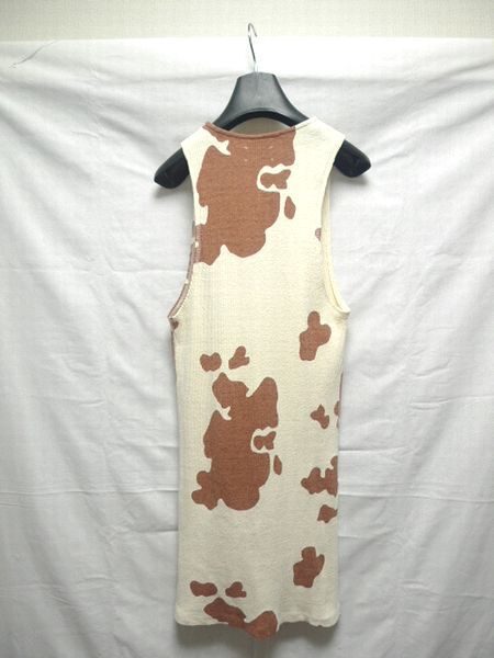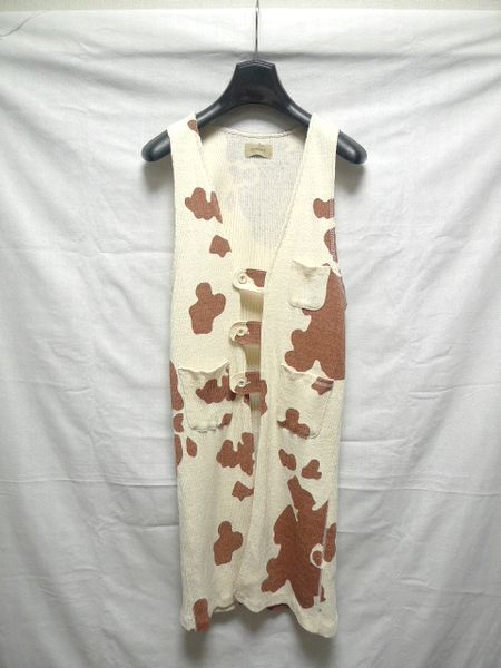 色 ベージュ系 サイズ フリー 寸法 着丈88cm位 身幅37cm位 (若干の誤差が生じてしまう場合がありますのでご了承下さい) 状態 数回着用していますがよごれなどはなく良好です。元々古着のような風合いのある仕上がりです。 素材 本体 コットン100% 別布 コットン100% ポケット布袋 コットン100% 定価 16500円 以下HPより リブ地の上にプリントを施したオリジナルファブリックを使用し、ヴィンテージアイテムをデザインアイデアに作製しました。 ベスト感覚で着られるワンピースはレイヤードスタイルに重宝するアイテム。 |