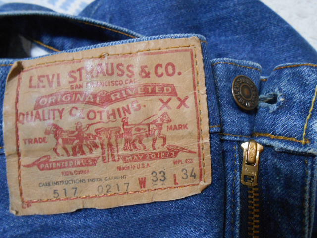 色濃い目!タロン42!USA製!リーバイス 517ブーツカット W33・L34 66前期? 501XX アメリカ製 内股シングル 黒カン 旧モデル