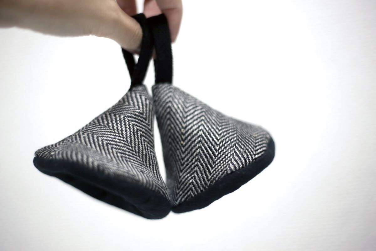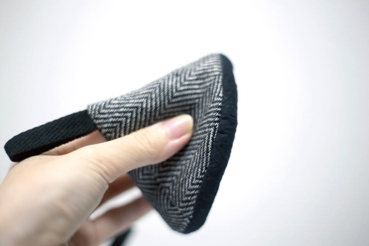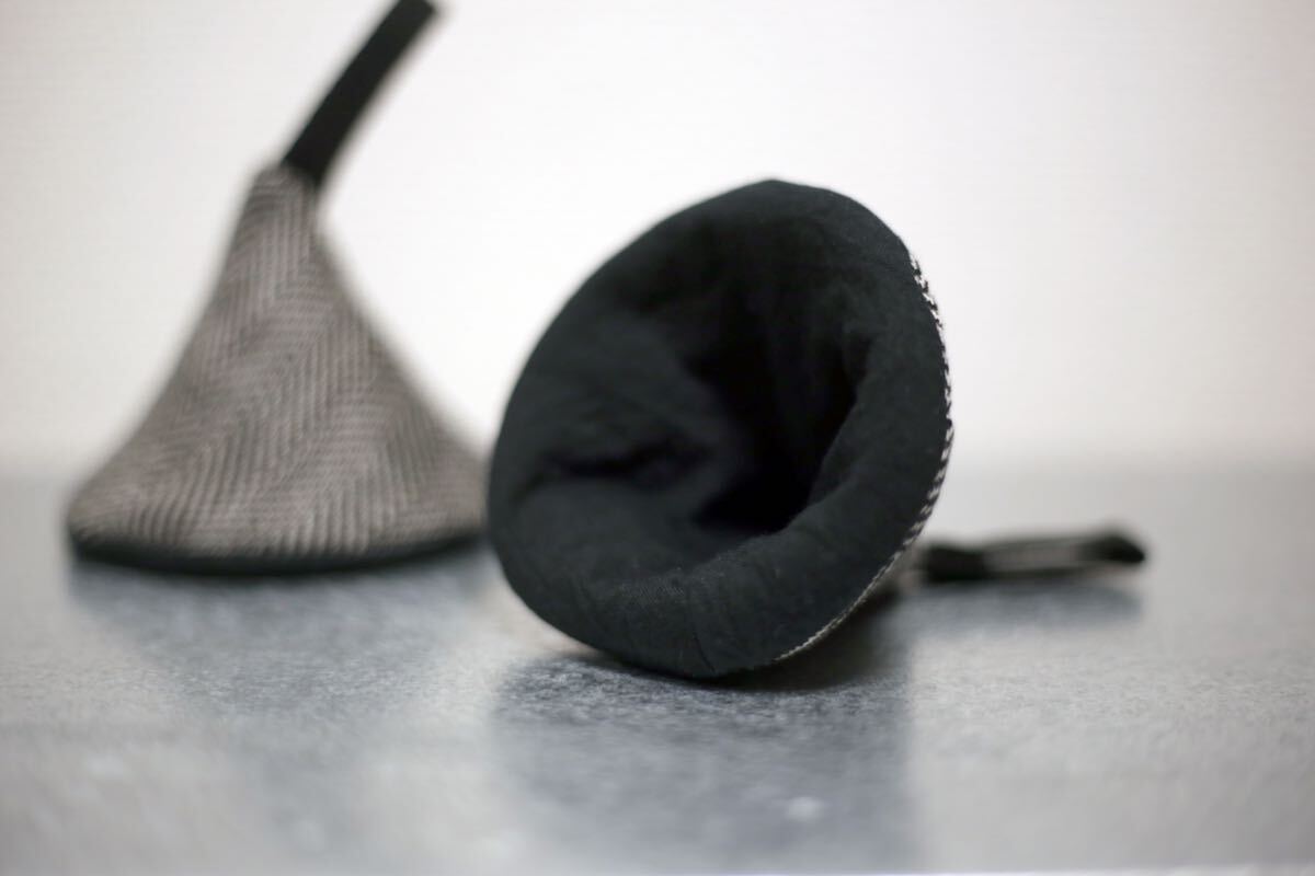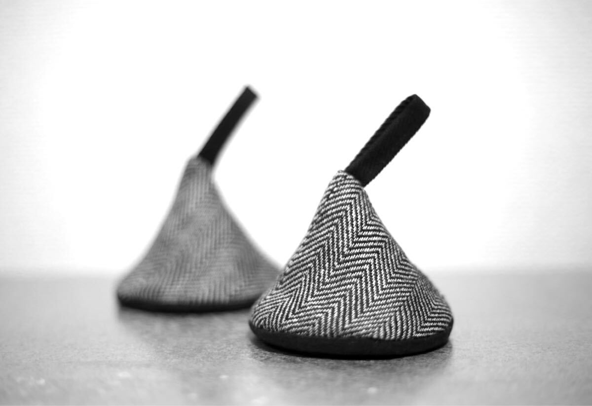 手のひらサイズでころんとした三角形が鍋の蓋や取っ手にピッタリはまります。