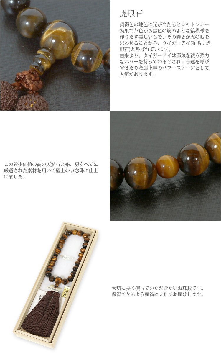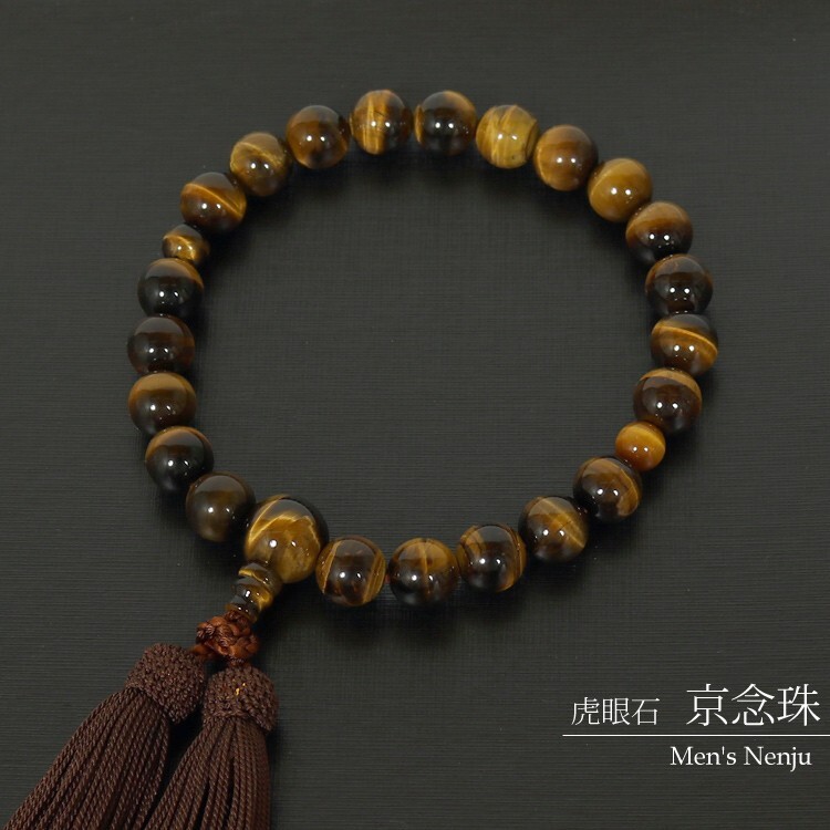 数珠 男性 念珠 虎目石 京念珠 天然石 桐箱入り 紳士用 珠数 zyuzu じゅず メンズ パワーストーン 略式数珠 日本製 j1206