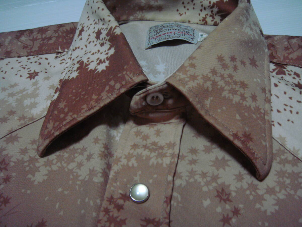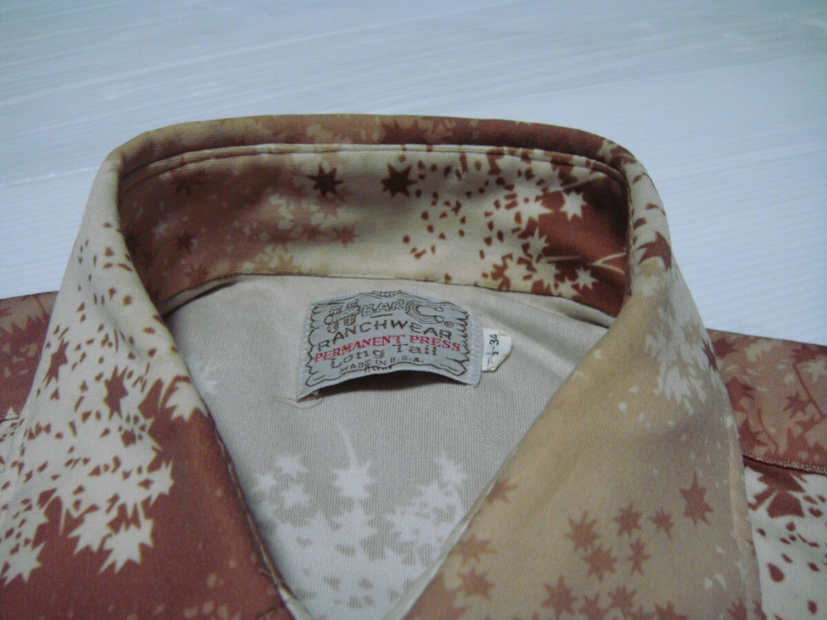 【 見てくださり 感謝します 】 【ブランド】 H BAR C California Ranchwear ウエスタンシャツの王様 H BAR C 1917年 創業 40年代〜50年代ものははコレクターの間では高値で取引されています こちらのオークションでもビンテージHBARCを出品中 ■ RODEO SNAP SHIRT ウエスタンシャツ ストライプ 総柄 化繊地 ポリシャツ ^ ^ v 70年代のものではないようですが、 襟が少し長く、70年代風に着こなせます ■ USA製 アメリカ古着 ■ サイズが合う方は、 絶対にこの機会をお見逃しなく、 是非!是非!! ゲットしてやって下さい (^-^)v 【表記サイズ】 USA 15 1/2 ー 34 日本サイズの大きめLサイズぐらいです。 【実寸】 肩幅 48cm (左肩ステッチ〜右肩ステッチまで計測) 身幅 60cm (脇あたりで計測) 着丈 82cm (バック襟の付け根から計測) 袖丈 62cm (肩からの計測) 素人採寸です。多少の誤差はご了承下さい! 【素材】 ?おそらく 綿0% ポリエステル100% 【状態】 USED 襟 ・ 袖口に擦れはありません。(写真)。 【 見てくださり感謝いたします 】 ↓ クリックして下さい。 ご覧いただければ幸いです。 ウエスタンシャツを主に出品させていただいています。 H BAR C / Scully など リーバイス デニム 激安で ご覧いただければ幸いです。 ↑ クリックして下さい。 N8 | ||||