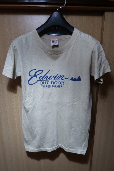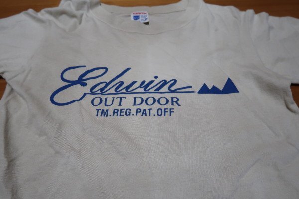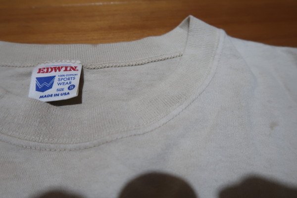 EDWIN USA製 プリントT Sサイズです、肩幅約42cm 着丈約62cm 身幅約43.5cm 袖丈約14cmです、使用感はあまりありませんが襟や肩に染みがあり色褪せがあります、発送はレターパックライトのみになります。