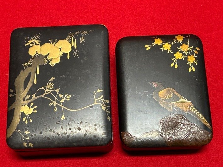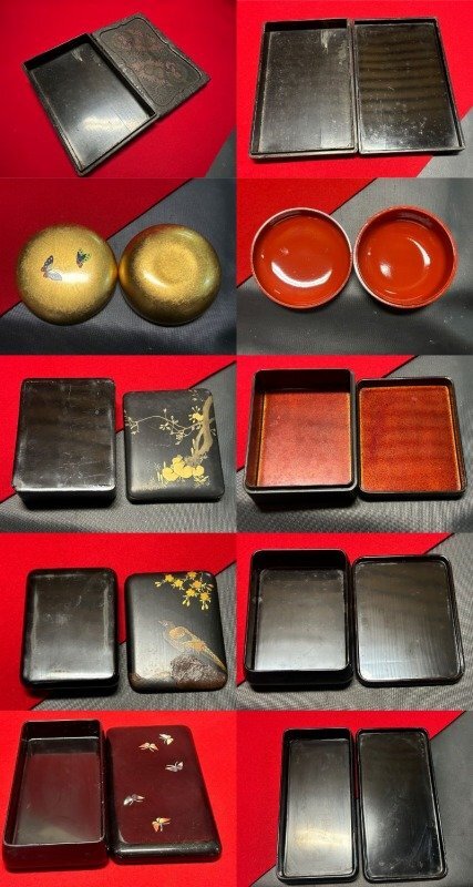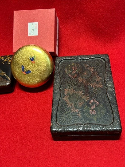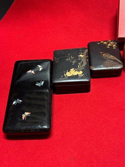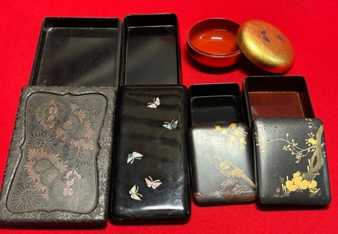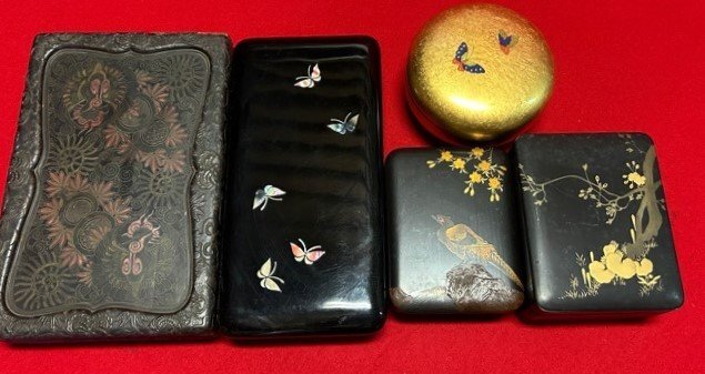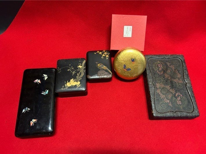 ◇当時物◇和製 高級小物入れ【漆 蒔絵 金彩 螺鈿・金箔 万寿ボンボンてふてふ等 五組】P08097