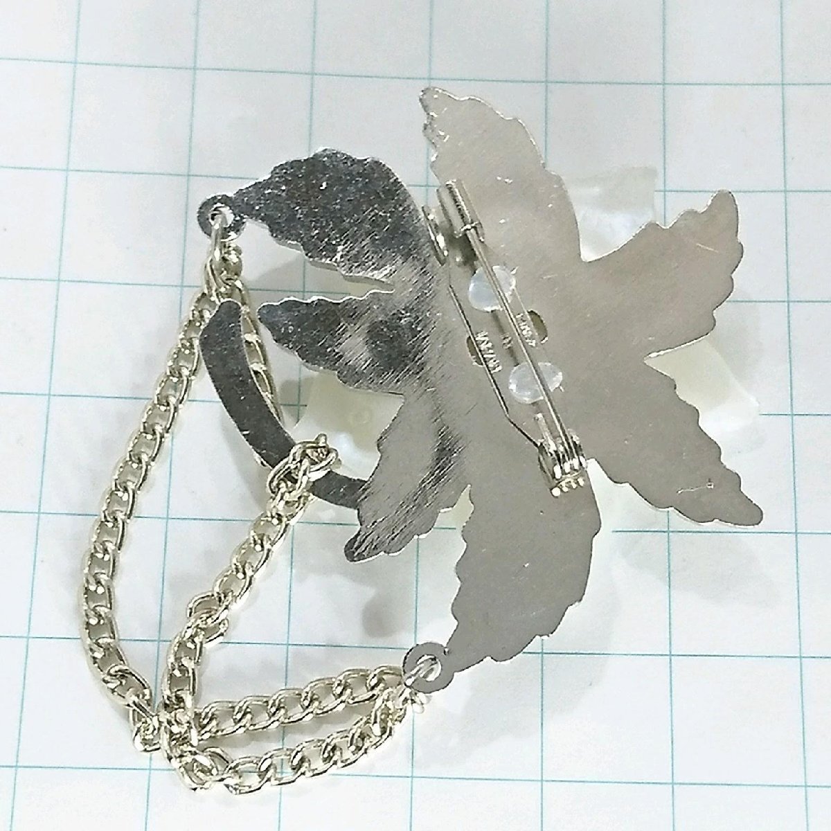 送料無料)ビンテージ☆白花モチーフ チェーン☆アンティーク ブローチ A25495